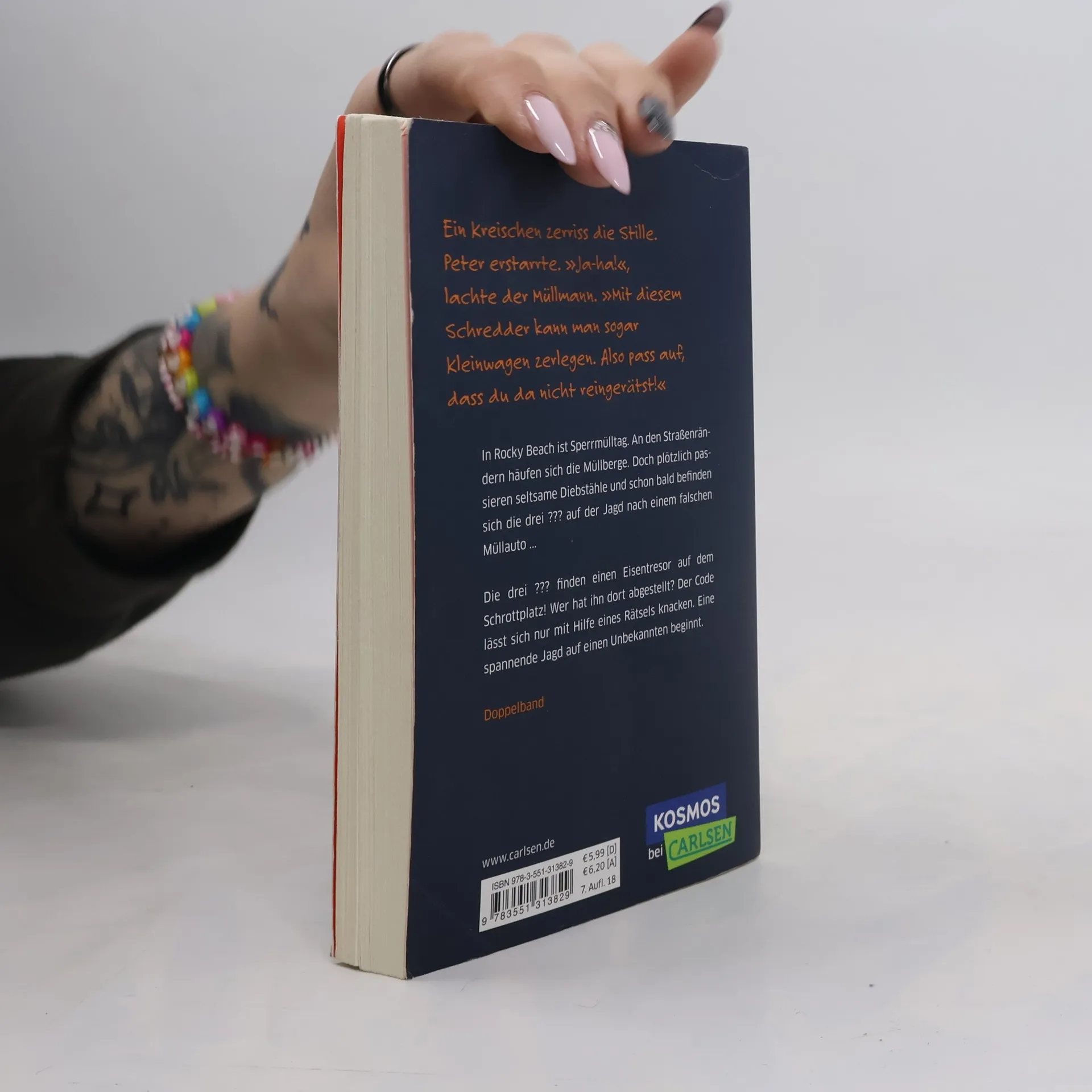 In Rocky Beach ist Sperrmülltag. An den Straßenrändern häufen sich die Müllberge. Doch plötzlich passieren seltsame Diebstähle und schon bald befinden sich die drei ??? auf der Jagd nach einem falschen Müllauto ... Die drei ??? finden einen Eisentresor auf dem Schrottplatz! Wer hat ihn dort abgestellt? Der Code lässt sich nur mithilfe eines Rätsels knacken. Eine spannende Jagd auf einen Unbekannten beginnt. Zwei spannende Fälle in einem Band!