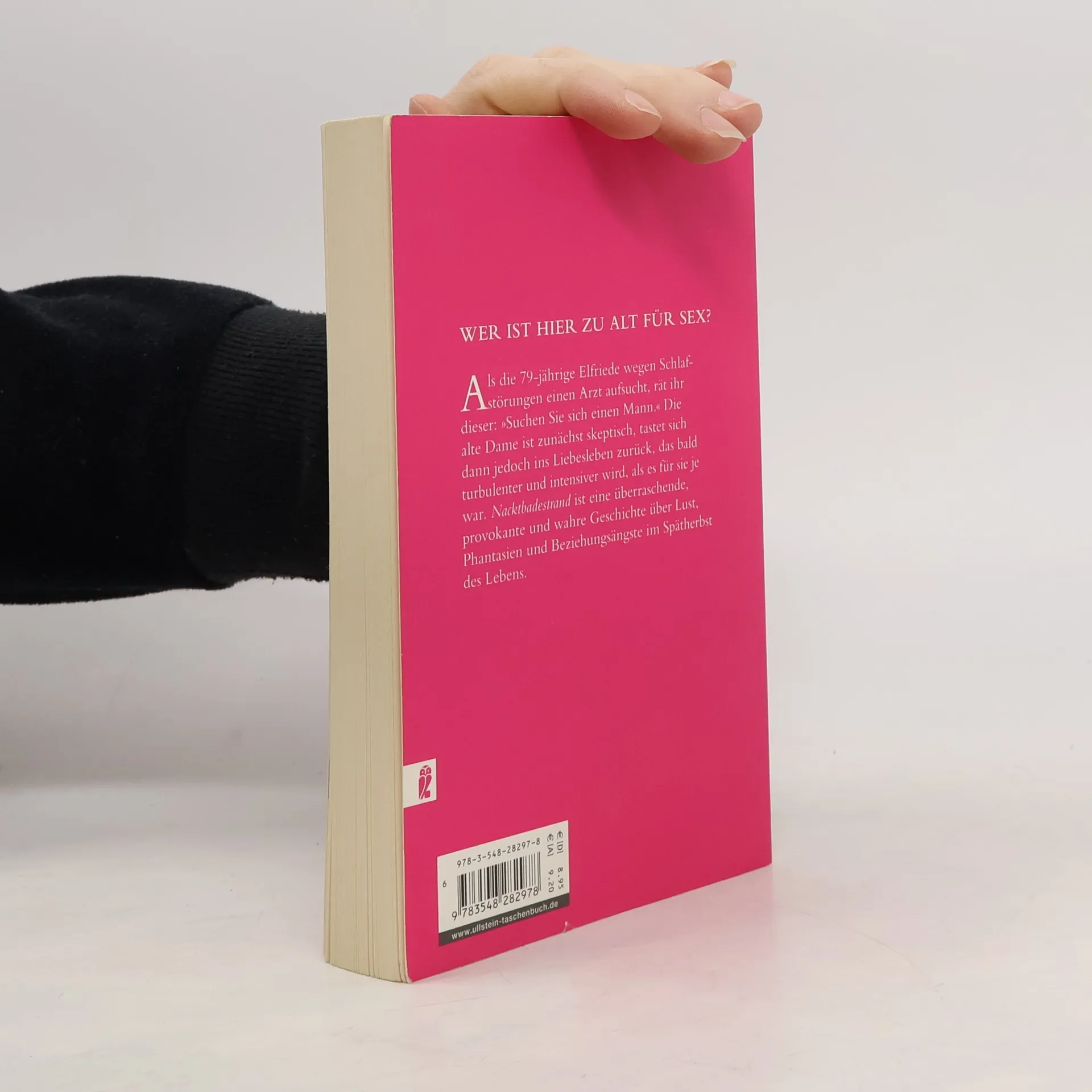 Als die 79-jährige Elfriede wegen Schlafstörungen einen Arzt aufsucht, rät ihr dieser: »Suchen Sie sich einen Mann.« Die alte Dame ist zunächst skeptisch, tastet sich dann jedoch ins Liebesleben zurück, das bald turbulenter und intensiver wird, als es für sie je war. Nacktbadestrand ist eine überraschende, provokante und wahre Geschichte über Lust, Phantasien und Beziehungsängste im Spätherbst des Lebens.