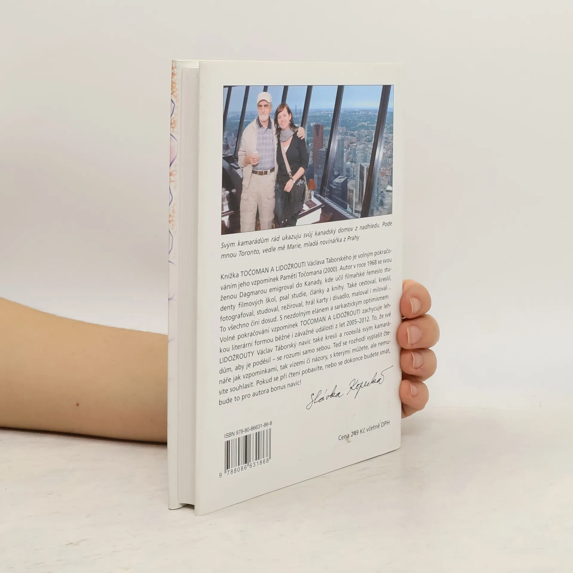 Knížka TOČOMAN A LIDOŽROUTI Václava Táborského je volným pokračováním jeho vzpomínek Paměti Točomana (2000). Autor v roce 1968 se svou ženou Dagmarou emigroval do Kanady, kde učil filmařské řemeslo studenty filmových škol, psal studie, články a knihy. Také cestoval, kreslil, fotografoval, studoval, režíroval, hrál karty i divadlo, maloval i miloval… To všechno činí dosud. S nezdolným elánem a sarkastickým optimismem. Volné pokračování vzpomínek TOČOMAN A LIDOŽROUTI zachycuje lehkou literární formou běžné i závažné události z let 2005–2012. To, že své LIDOŽROUTY Václav Táborský navíc také kreslí a rozesílá svým kamarádům, aby je poděsil – se rozumí samo sebou. Teď se rozhodl vyplašit čtenáře jak vzpomínkami, tak vizemi či názory, s kterými můžete, ale nemusíte souhlasit. Pokud se při čtení pobavíte, nebo se dokonce budete smát, bude to pro autora bonus navíc!