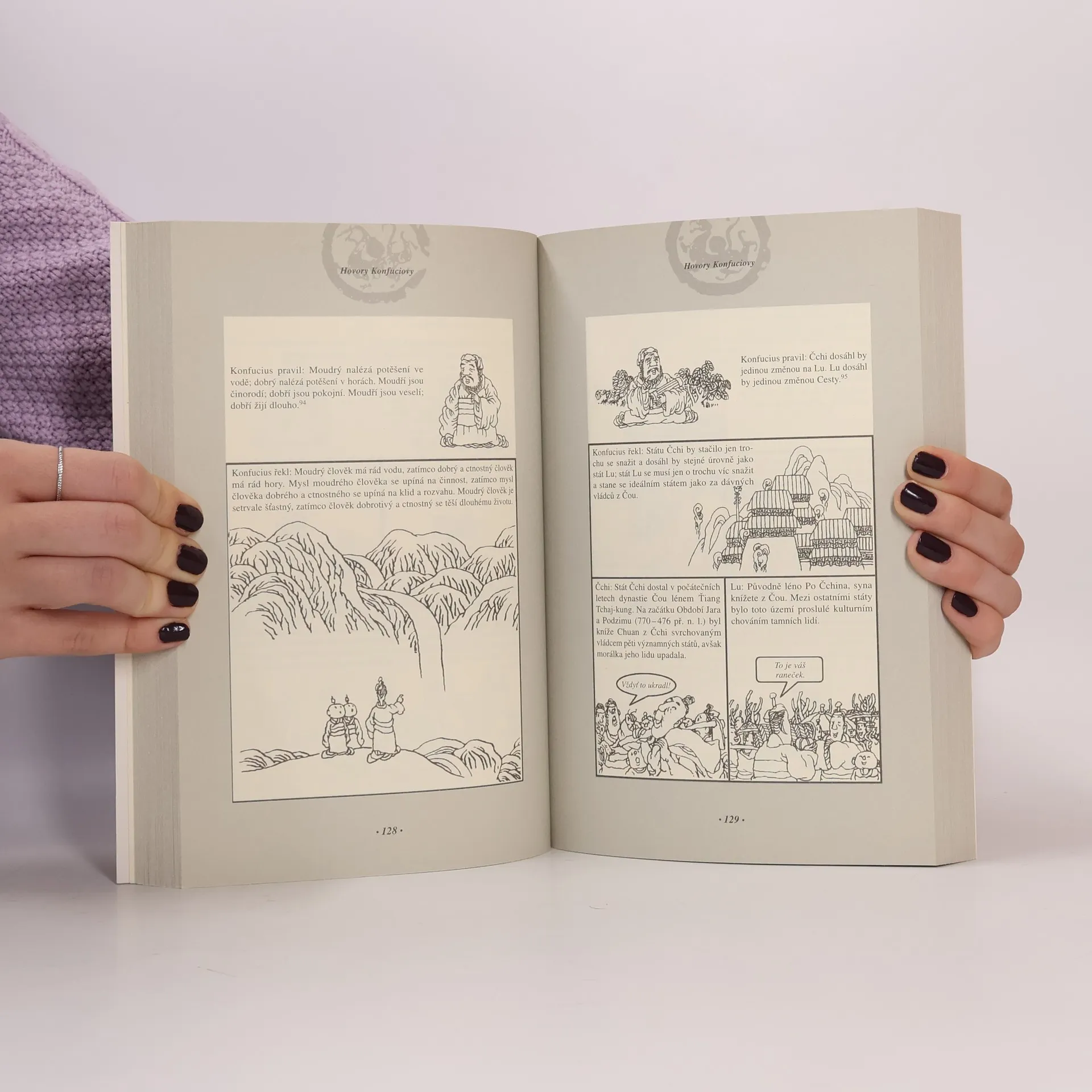 Hovory jsou záznamem výroků a činů proslulého čínského myslitele Konfucia a jeho žáků včetně jejich diskuzí. Byly napsány během Období Jara a Podzimu a Období Válčících států (770–221 př. n. l.). Jsou reprezentativní prací konfucianismu a dodnes si uchovávají obrovský vliv na myšlenky a hodnoty Číny a východní Asie. Tato kniha vysvětluje myšlenky a filozofii Konfucia velmi přístupnou formou za pomoci bohatých ilustrací.