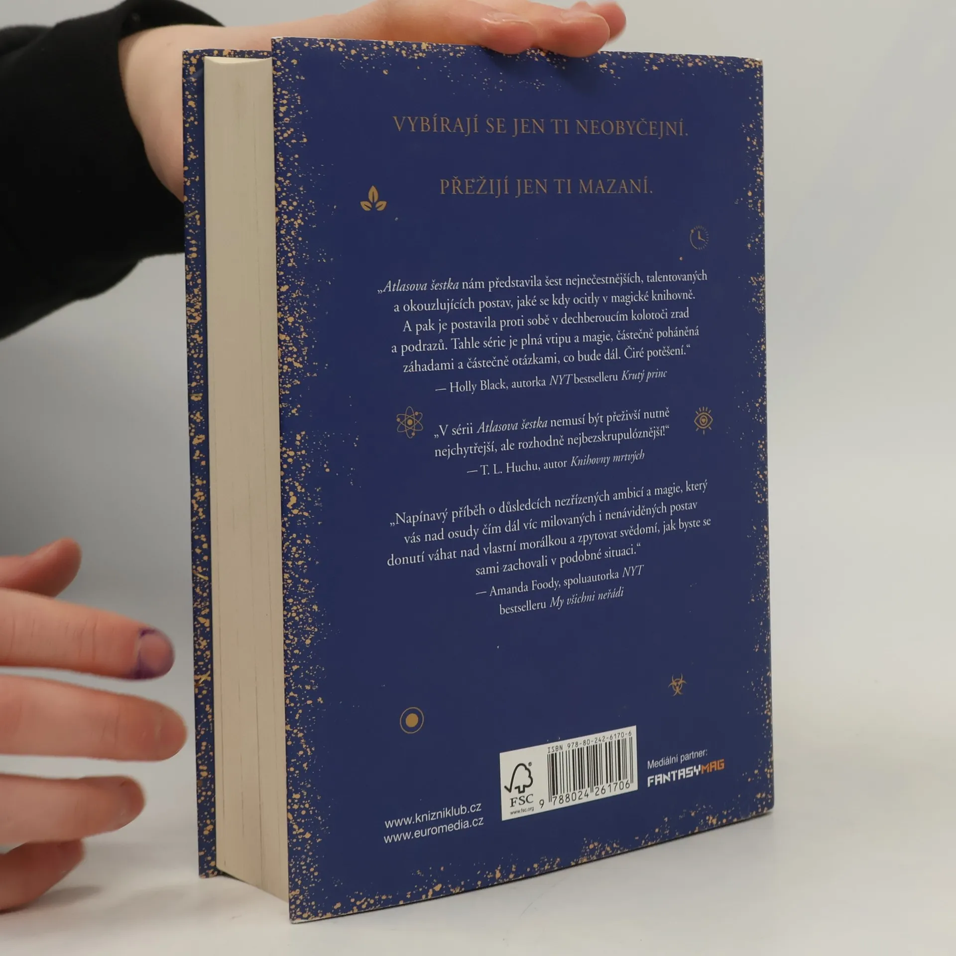 Moc má svou cenu… Atlasův komplex je dlouho očekávané pokračování bestsellerů Atlasova šestka, a také Atlasův paradox – s ještě vyššími sázkami i vášní. Po dramatickém návratu do knihovny Sídla je šestice členů Alexandrijské společnosti zranitelnější než kdy dřív. Stará spojenectví se rychle rozpadají, protože si zasvěcení osvojují protichůdné strategií, aby se vypořádali se smrtící dohodou, kterou se jim dosud nepodařilo dodržet. Ti, kdo zůstávají v archivech, zápasí s následky svých astronomických schopností, zatímco nepravděpodobná dvojice z předchozího výběru Společnosti ovlivňuje politiku na globální scéně. Zatímco okolní svět se stále mobilizuje, aby je zničil, sám Správce, Atlas Blakely, přichází s plánem, který se mění v závod o přežití. Šest rekrutů Společnosti tak stojí před otázkou, co jsou ochotni zradit pro neomezenou moc… a kdo bude cestou zničen.