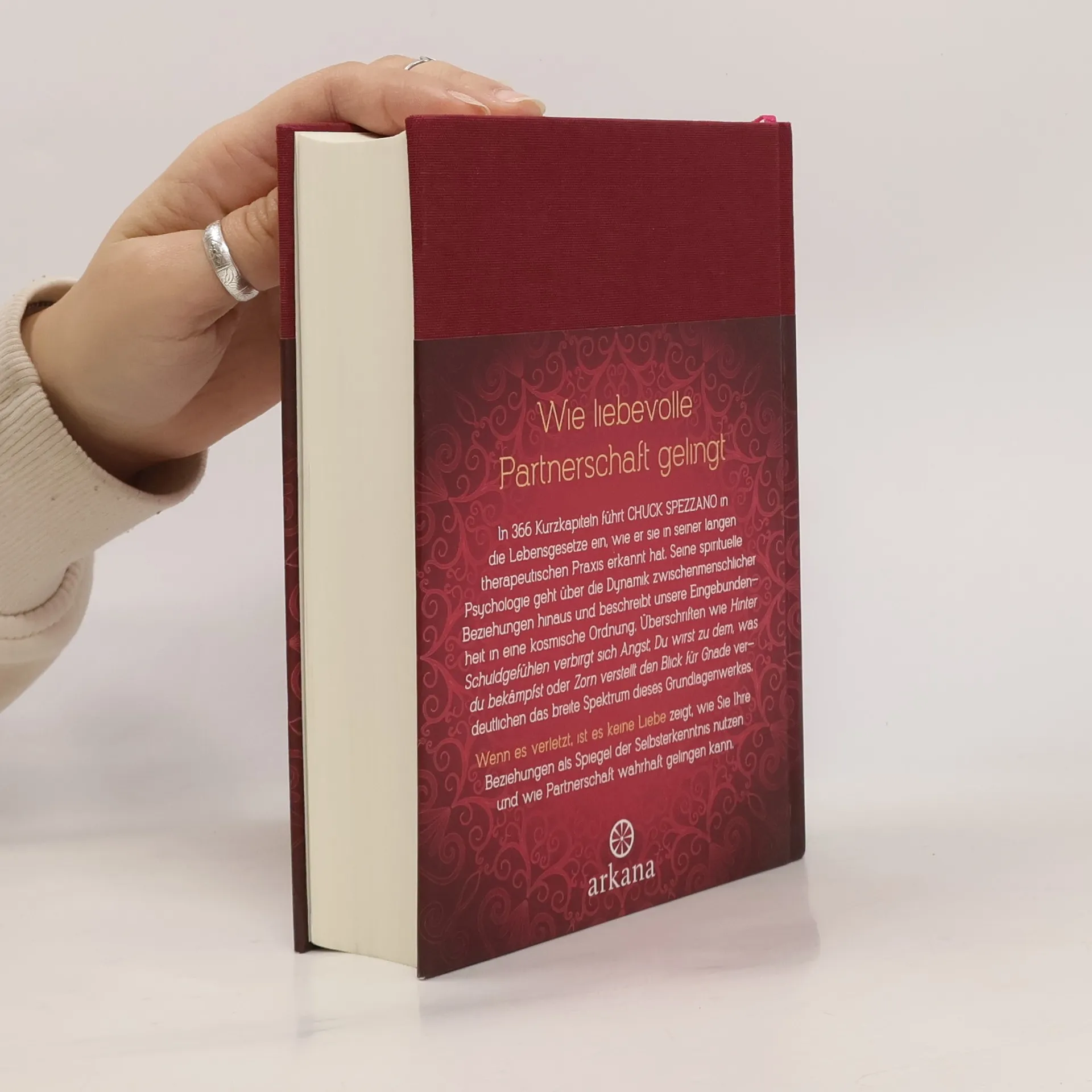 Für alle, die das Liebesglück suchen. In seinem Bestseller führt Chuck Spezzano in 366 Kurzkapiteln in die Lebensgesetze ein, wie er sie in seiner langjährigen therapeutischen Praxis erkannt hat. Seine spirituelle Psychologie geht über die Dynamik zwischenmenschlicher Beziehungen hinaus und beschreibt unser Eingebundensein in eine kosmische Ordnung. Auf magische Weise ergänzt oder spiegelt unser Partner, im Beruf oder in der Ehe, immer die Stärken oder Schwachpunkte der eigenen Persönlichkeit. So gesehen zeigt Spezzano, wie wir unsere Beziehungen als Spiegel der Selbsterkenntnis nutzen und wie Partnerschaft wahrhaft gelingen kann. Attraktive Neuausstattung mit Halbleinen und Lesebändchen.