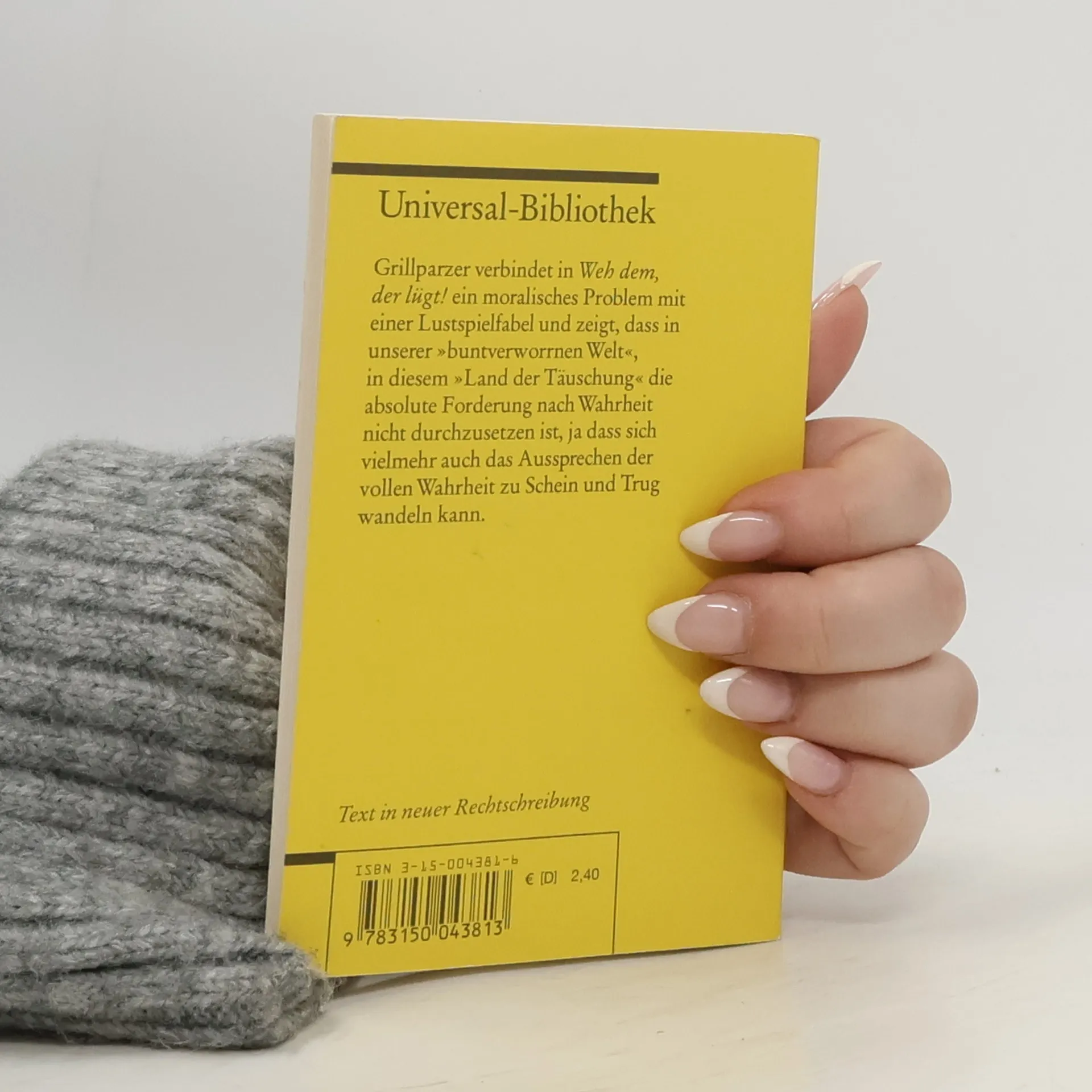 Grillparzer verbindet in »Weh dem, der lügt!« ein moralisches Problem mit einer Lustspielfabel und zeigt, dass in unserer »buntverworrnen Welt«, in diesem »Land der Täuschung« die absolute Forderung nach Wahrheit nicht durchzusetzen ist, ja dass sich vielmehr auch das Aussprechen der vollen Wahrheit zu Schein und Trug wandeln kann. Text in neuer Rechtschreibung.