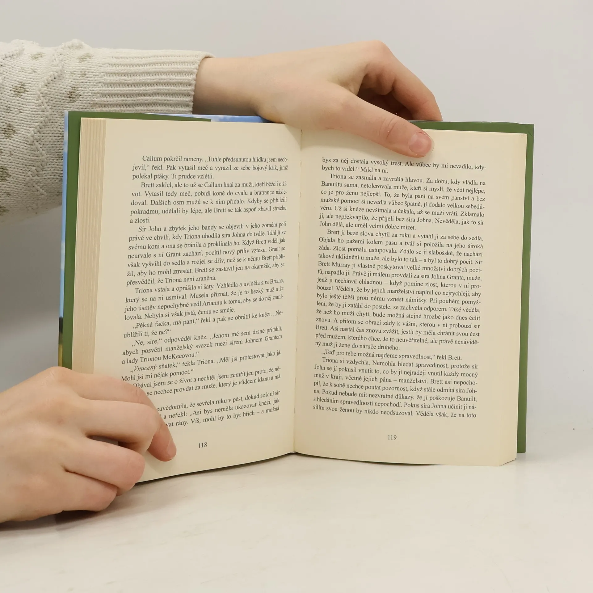 Historická milostná romance ze skotské Vysočiny. Život lady Triony McKeeové je v troskách. Provdala se z lásky a do manželství vkládala naděje. Doufala, že se jí splní sen o krásném rodinném životě, ale záhy ovdověla. Zůstala sama a navíc musí bojovat o svá práva, protože mocný, bohatý a namyšlený majitel vedlejšího panství chce připravit ji a její dceru o majetek. Avšak jediný pohled do podmanivě zelených očí rytíře sira Bretta Murraye, jenž přijel na její panství v doprovodu její sestřenice Ariadny, ji varuje. Slib pomoci ze strany pohledného statného rytíře pro ni může být stejně nebezpečný jako samotný boj o přežití...