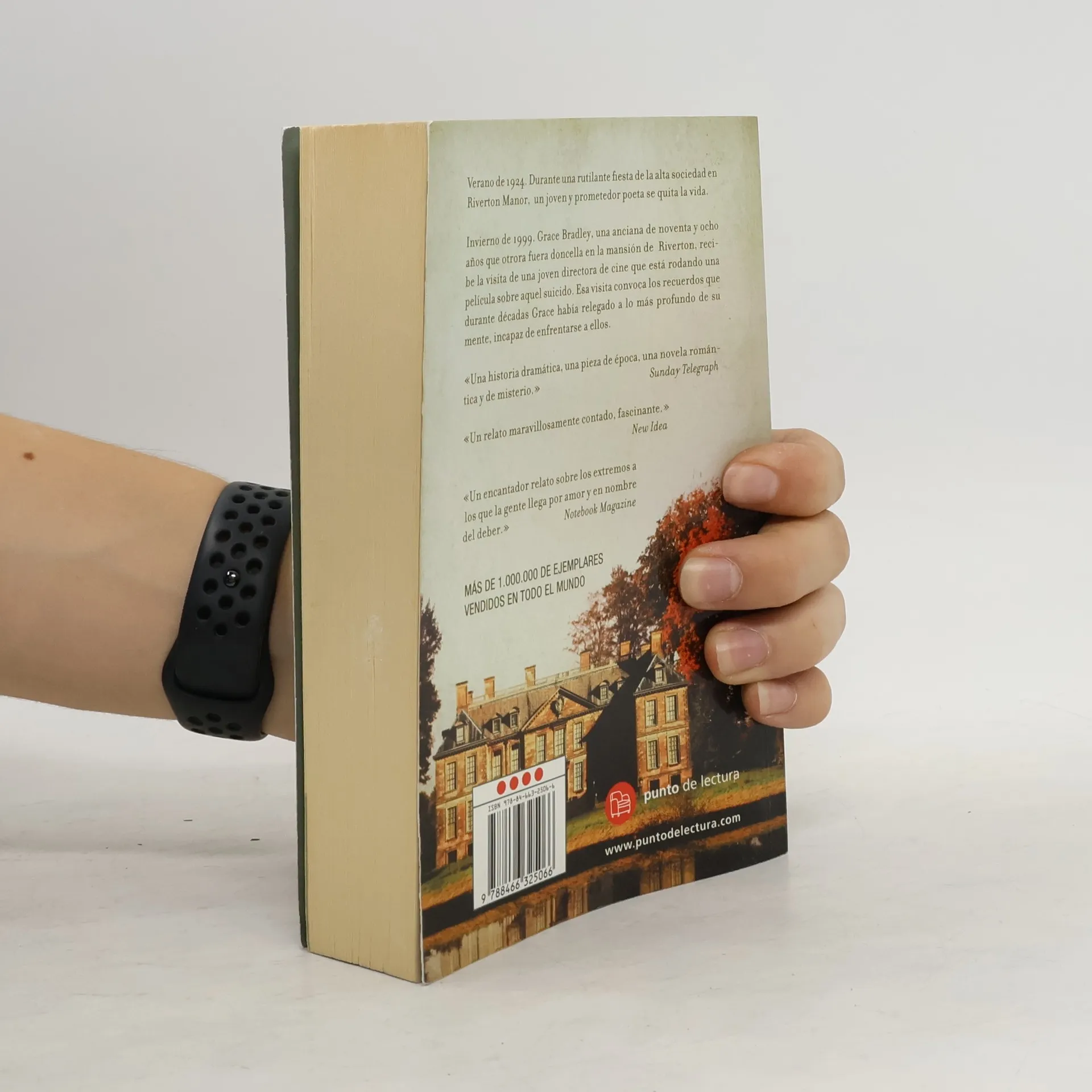 "Verano de 1924. Durante una rutilante fiesta de la alta sociedad en Riverton Manor, un joven y prometedor poeta se quita la vida. Invierno de 1999. Grace Bradley, una anciana de noventa y ocho años que otrora fuera doncella en la mansión de Riverton, recibe la visita de una joven directora de cine que está rodando una película sobre aquel suicido [suicidio]. Esa visita convoca los recuerdos que durante décadas Grace había relegado a lo más profundo de su mente, incapaz de enfrentarse a ellos."--Back cover