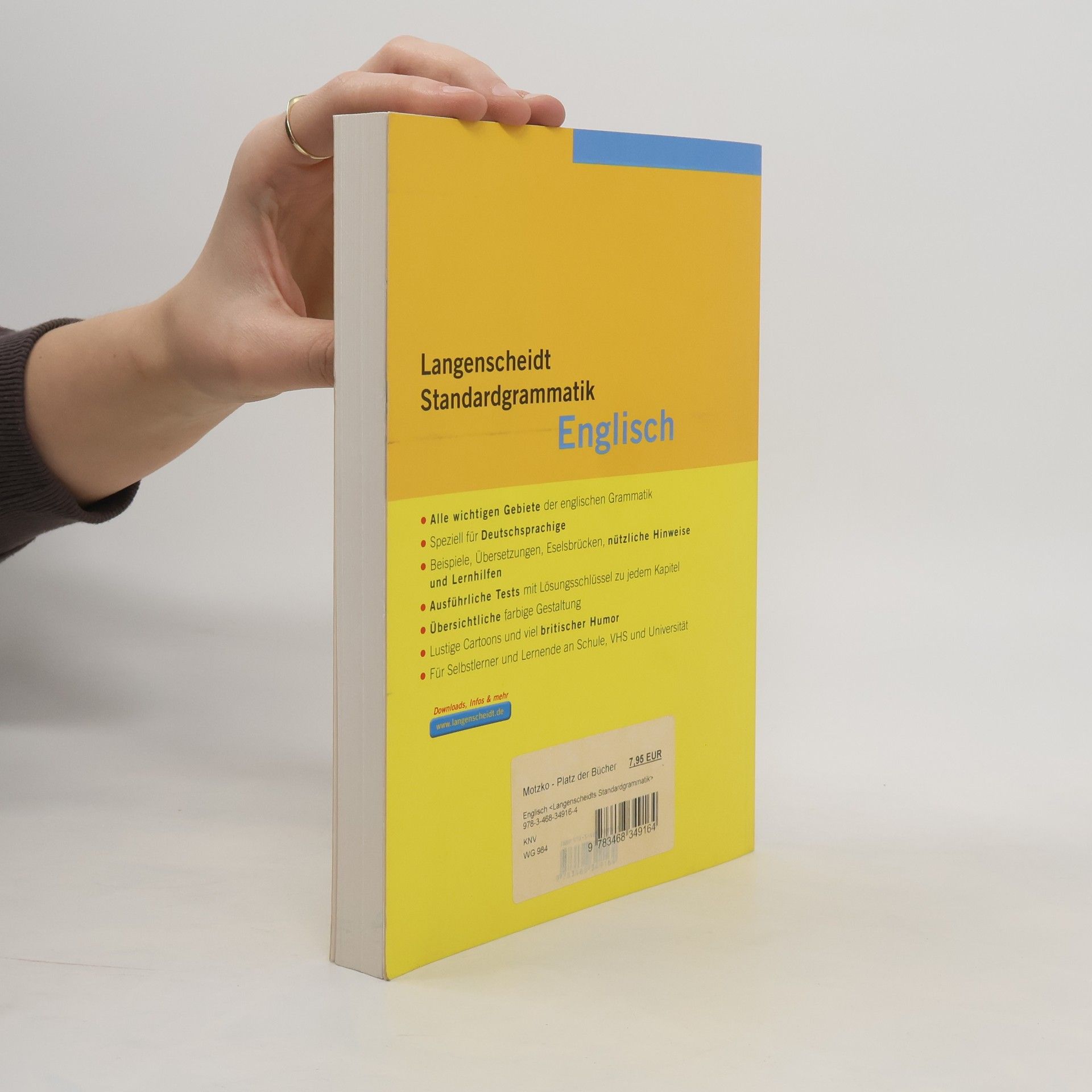 Bei der Langenscheidt Standardgrammatik Englisch handelt es sich um eine umfangreiche, leicht verständliche Grammatik für Lerner aller Art. Die englische Grammatik wird ausführlich und genau beschrieben. Zu allen grammatischen Themen gibt es Beispielsätze aus dem Sprachgebrauch des täglichen Lebens sowie authentische Belege. Durchgehende deutsche Übersetzungen erleichtern das Verständnis und helfen, ein Gefühl für die englische Sprache zu entwickeln. Die Unterschiede zum Deutschen werden zudem hervorgehoben und bewusst als Verständnis- und Merkhilfe genutzt. Testaufgaben am Ende eines jeden Kapitels helfen, das erworbene Wissen praktisch anzuwenden und zu festigen. Die Standardgrammatik Englisch ist geeignet für Schule, Universität und Beruf, für den Gruppenunterricht sowie für das Selbststudium.