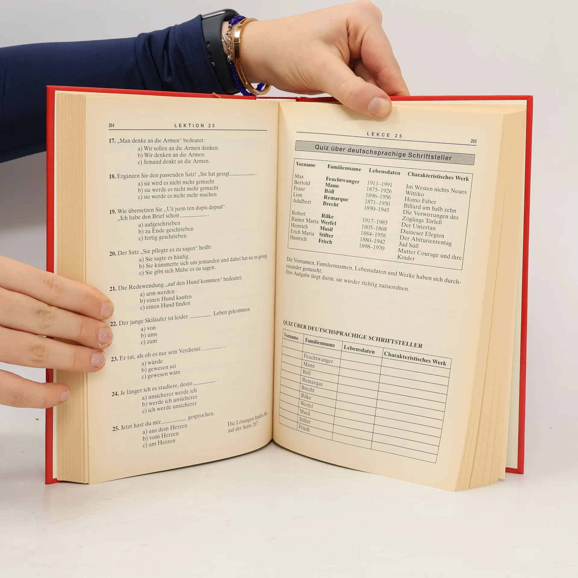 Deutsch für Selbstlerner Ilustroval Jaroslav Plesl Učebnice je určena těm, kteří se chtějí učit jazyk, ale nenajdou při svém zaneprázdnění dostatek času, aby mohli pravidelně navštěvovat jazykový kurz, a rovněž i těm, kteří si chtějí učivo přehledně zopakovat a oživit zapomenuté znalosti. Je rozdělena do dvou dílů po 15 lekcích. Oba díly jsou doplněny audiokazetou, umožňující náslech správné výslovnosti a korekci chyb. První zahrnuje základní mluvnici včetně minulého času a trpného rodu. Druhý se věnuje slovotvorbě a drobným jazykovým nuancím, které jsou nutné pro dokonalé zvládnutí jazyka. Důraz je kladen i na německé reálie. Každá lekce seznamuje s jedním velikánem německé vědy či kultury. Texty jsou čtivé, propojeny dějovou linií a mají bohatou slovní zásobu. Kontrolní testy jsou uvedeny za každou pátou lekcí. Odměnou za vynaloženou námahu pak jsou drobné anekdoty, křížovky a kvízy. Nespornou předností učebnice je i to, že respektuje nová pravopisná pravidla němčiny, která vstupují v platnost.