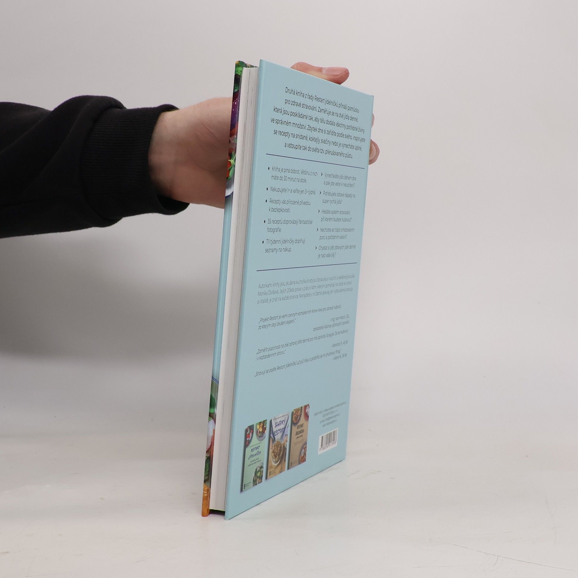 Druhá kniha z řady Restart jídelníčků přináší praktickou pomůcku pro zdravé stravování. Nenajdete v ní žádné extrémy, ale praktické kroky ověřené 20 lety nutriční praxe obou autorek. Zaměřuje se hlavně na dvě jídla denně, která jsou poskládaná tak, aby tělu dodala všechny potřebné živiny ve správném množství. Zbylá jídla si zařídíte podle svého, inspirujete se recepty na snídaně, koktejly, svačiny nebo je vynecháte úplně, a vstoupíte tak do světa tzv. přerušovaného půstu. Přináší systém jednoduchého přístupu ke zdravé kuchyni. Ačkoli jsou jídla jednoduchá na přípravu, jsou výtečná na chuť a splňují požadavky výživného pokrmu. Nečekejte žádné velké omezování ani počítání kalorií. Týdenní jídelníčky sestavené tak, abyste využili všechny nakoupené suroviny a nemuseli přemýšlet o tom, co zítra vařit, vám zároveň dávají prostor na rodinné oslavy nebo večeři v restauraci. I to k životu patří. Autorkami knihy jsou zkušená kuchařka Kristýna Ostratická a Monika Divišová, nutriční a wellbeing koučka.