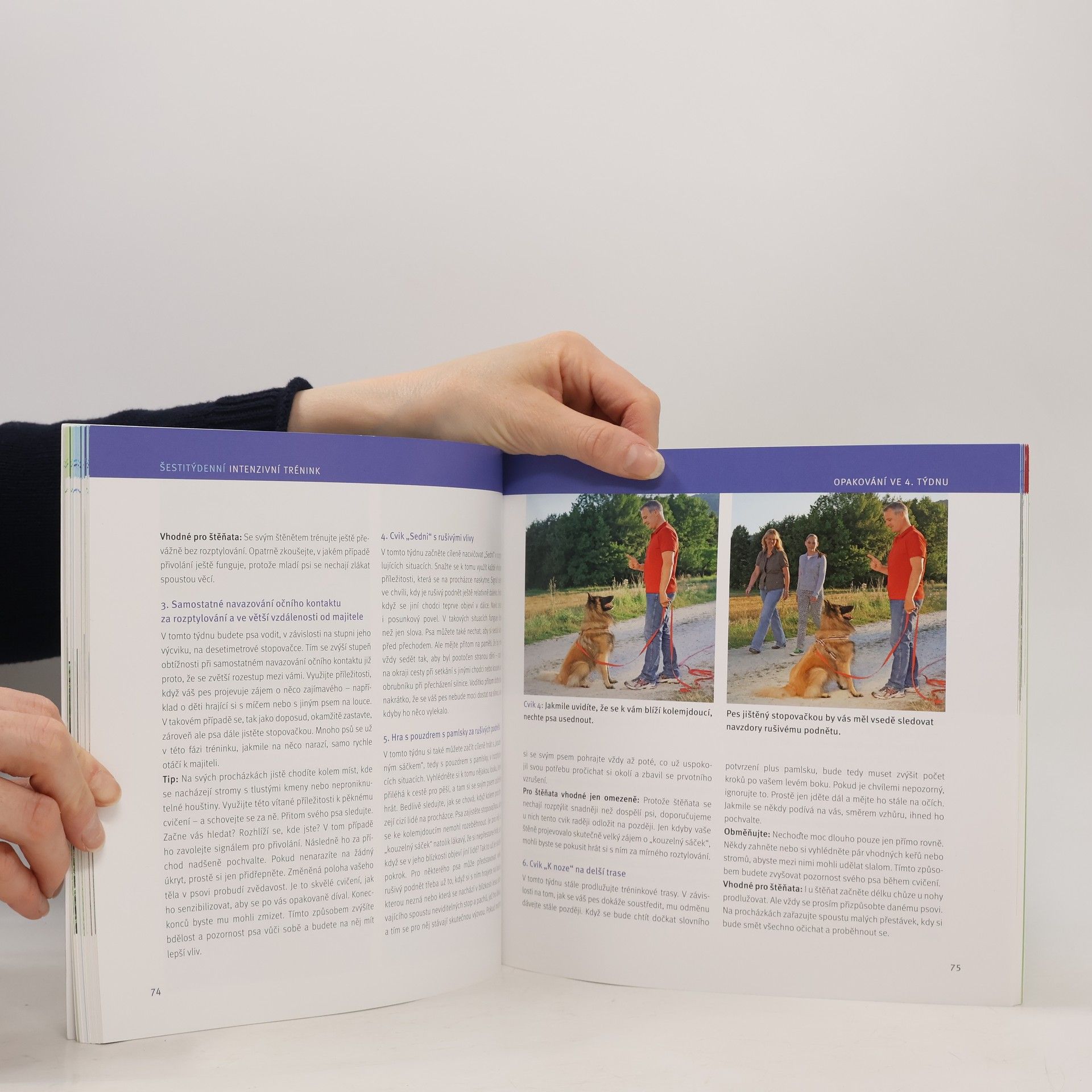 Šestitýdenní výcvikový plán je určený především pro majitele, kteří na dlouhý a náročný trénink svého domácího mazlíčka nemají čas. Tato kniha jim poradí, jak vytrénovat psa hravě a úsporně na každodenních tematických procházkách, a je určena pro všechna plemena bez rozdílu věku. Uvádí konkrétní návody doplněné obrazovým doprovodem, které krok za krokem znázorňují teorii i praxi.