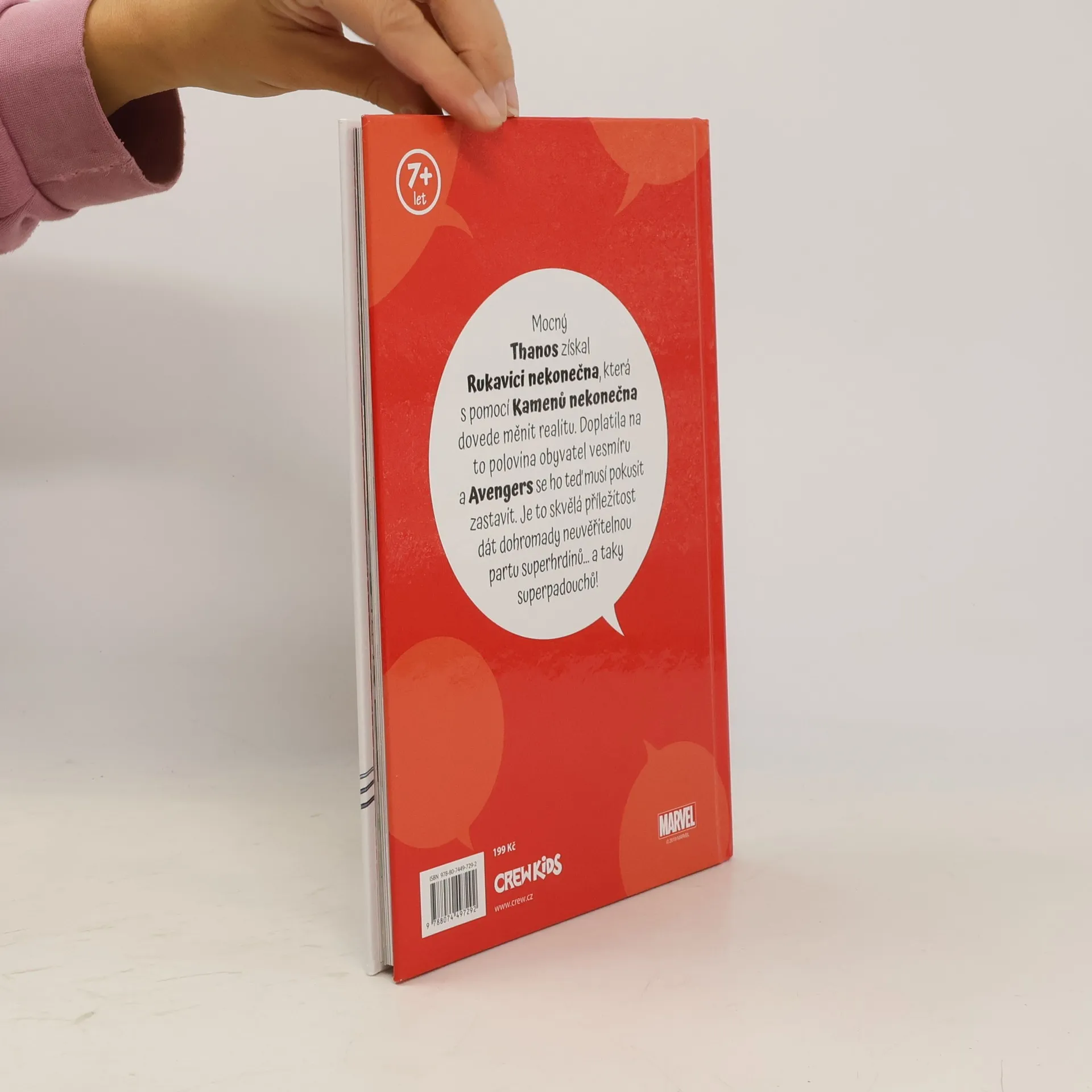 Thanos, postrach vesmíru, získal klenoty nekonečna, které mu dávají vládu nad celým vesmírem. S mocí klenotů zničil polovinu populace všech světů, včetně mnoha Avengerů a polovinu Fantastic Four. Jak dokáže malá skupina hrdinů a padouchů včetně Spider-Mana, Wolverina, Ms. Marvel a Doctora Dooma zastavit nezastavitelné? Legendární příběh zpracovaný pro mladší čtenáře!