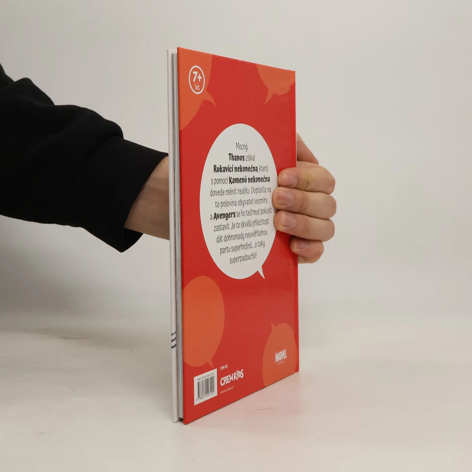 Thanos, postrach vesmíru, získal klenoty nekonečna, které mu dávají vládu nad celým vesmírem. S mocí klenotů zničil polovinu populace všech světů, včetně mnoha Avengerů a polovinu Fantastic Four. Jak dokáže malá skupina hrdinů a padouchů včetně Spider-Mana, Wolverina, Ms. Marvel a Doctora Dooma zastavit nezastavitelné? Legendární příběh zpracovaný pro mladší čtenáře!