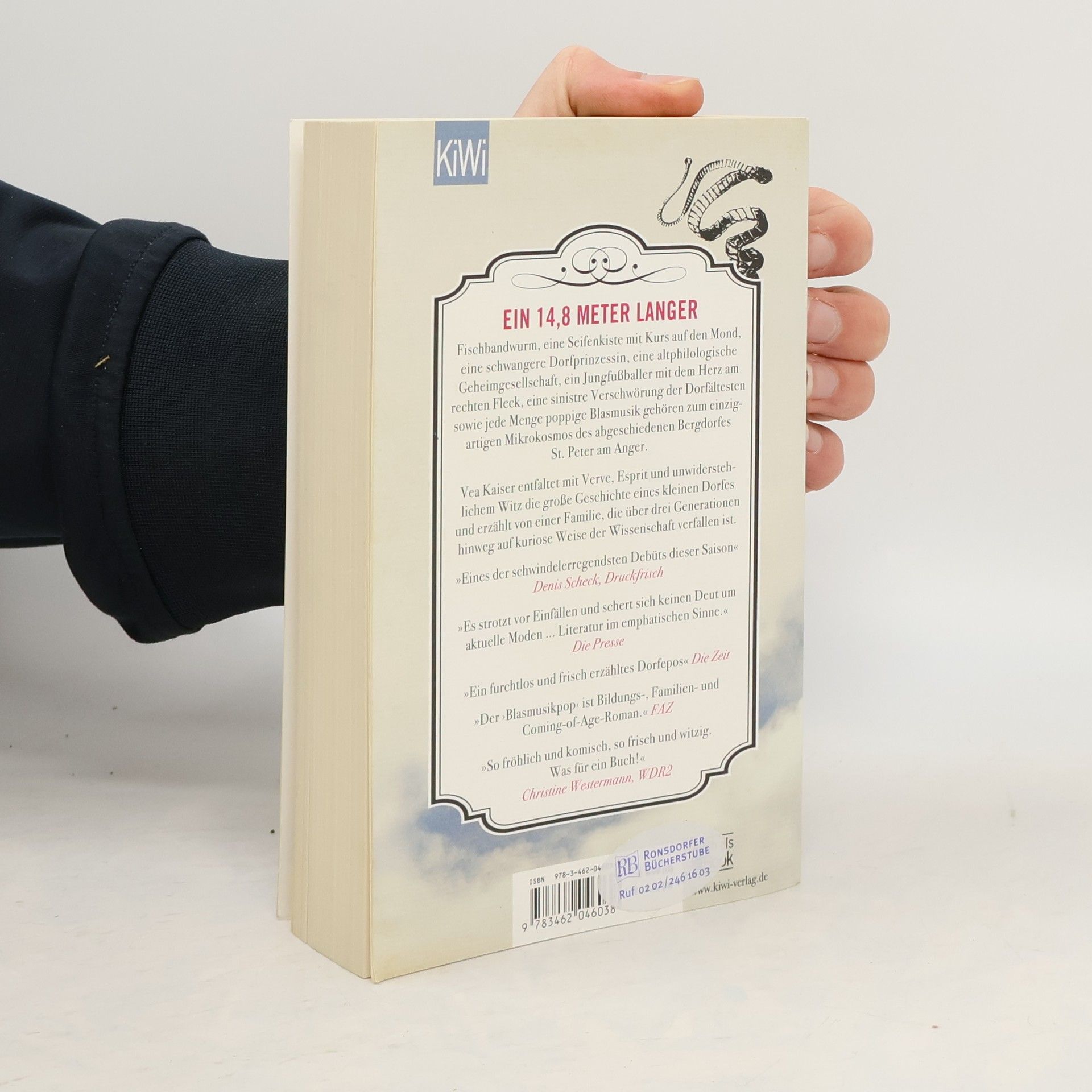 »Ein großer Literaturspaß, ein sehr gelungenes Debüt« Denis Scheck Ein 14,8 Meter langer Fischbandwurm, eine Seifenkiste mit Kurs auf den Mond, ein ungeahnt attraktiver Mönch im Jaguar, ein fallender Engel, eine schwangere Dorfprinzessin, eine altphilologische Geheimgesellschaft, eine nordic-walkende Mütterrunde, ein Jungfußballer mit dem Herz am rechten Fleck, eine sinistre Verschwörung der Dorfältesten sowie jede Menge poppige Blasmusik gehören zum unvergesslichen Mikrokosmos dieses Romans, der durch seine Hingabe an leuchtende Details und skurrile Begebenheiten, durch seinen erzählerischen Furor und seine Vielstimmigkeit besticht. Vea Kaiser entfaltet mit Verve, Esprit und unwiderstehlichem Witz die große Geschichte eines kleinen Dorfes und erzählt von einer Familie, die über drei Generationen hinweg auf kuriose Weise der Wissenschaft verfallen ist. Ein wagemutiges, herausragendes Debüt, das Kritik und Leser gleichermaßen verzaubert hat.