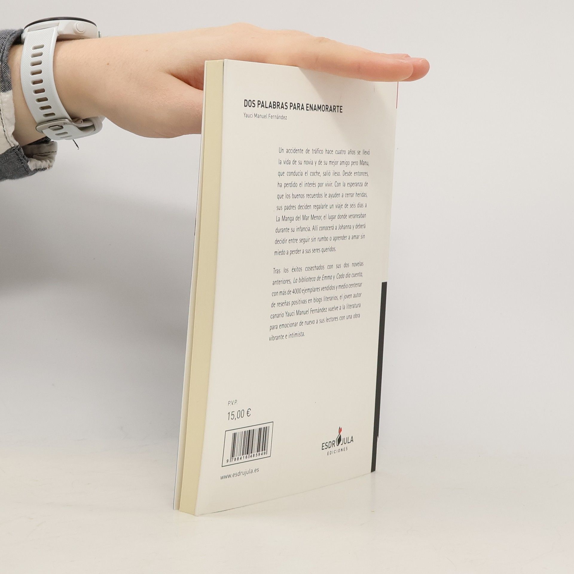 Un accidente de tráfico hace cuatro años se llevó la vida de su novia y de su mejor amigo pero Manu, que conducía el coche, salió ileso. Desde entonces, ha perdido el interés por vivir. Con la esperanza de que los buenos recuerdos le ayuden a cerrar heridas, sus padres deciden regalarle un viaje de seis días a La Manga del Mar Menor, el lugar donde veraneaban durante su infancia. Allí conocerá a Johanna y deberá decidir entre seguir sin rumbo o aprender a amar sin miedo a perder a sus seres queridos.Tras los éxitos cosechados con sus dos novelas anteriores, La biblioteca de Emma y Cada día cuenta, con más de 4.000 ejemplares vendidos y medio centenar reseñas positivas en blogs literarios, el joven autor canario Yauci Manuel Fernández vuelve a la literatura para emocionar de nuevo a sus lectores con una obra vibrante e intimista.
