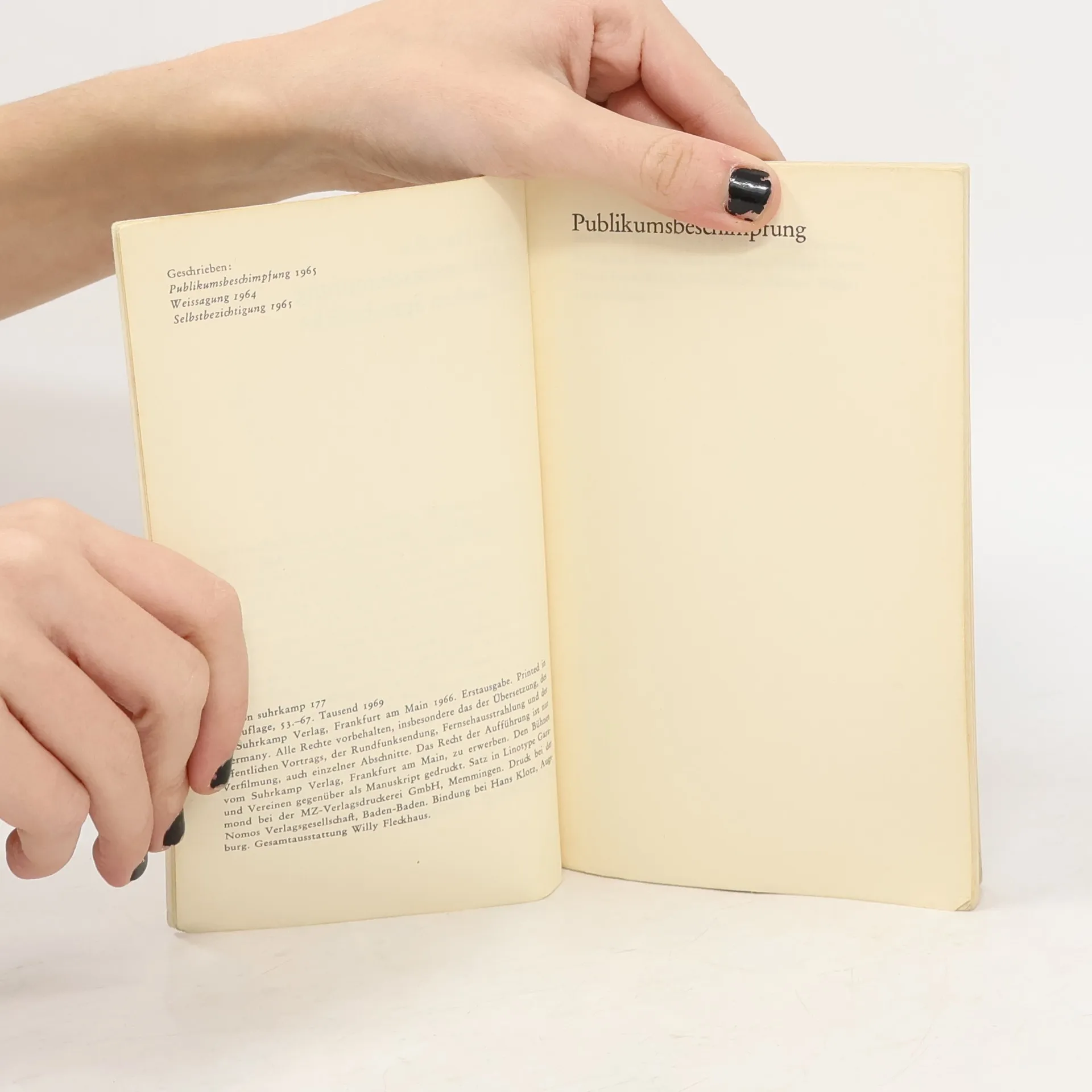 Publikumsbeschimpfung und andere Sprechstücke, Peter Handke Winston