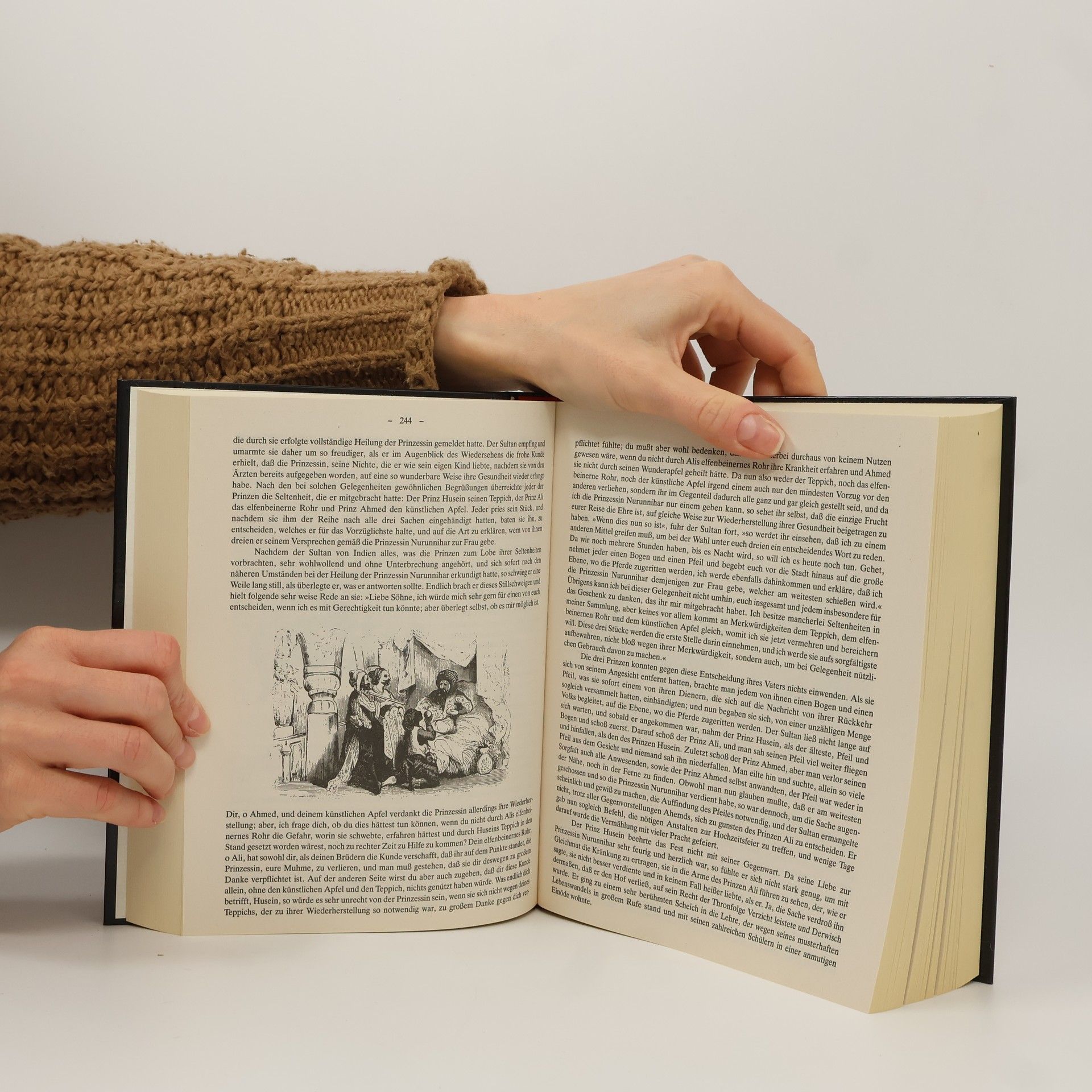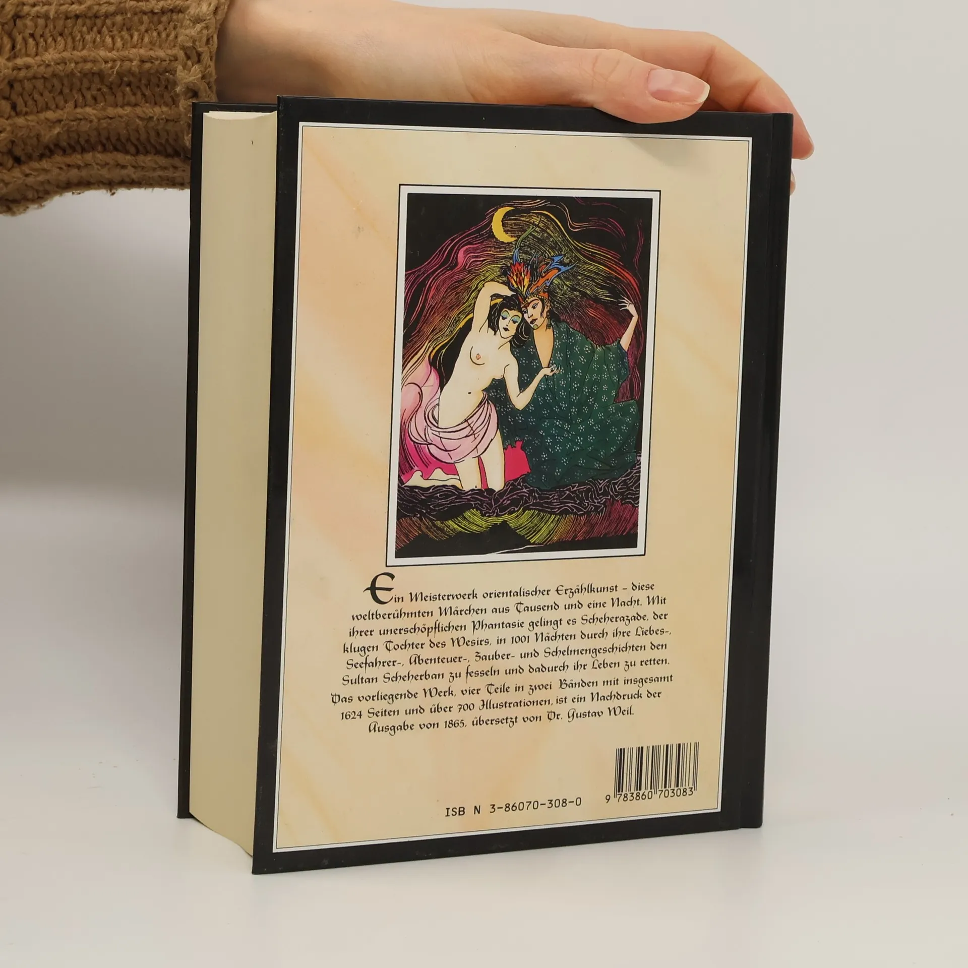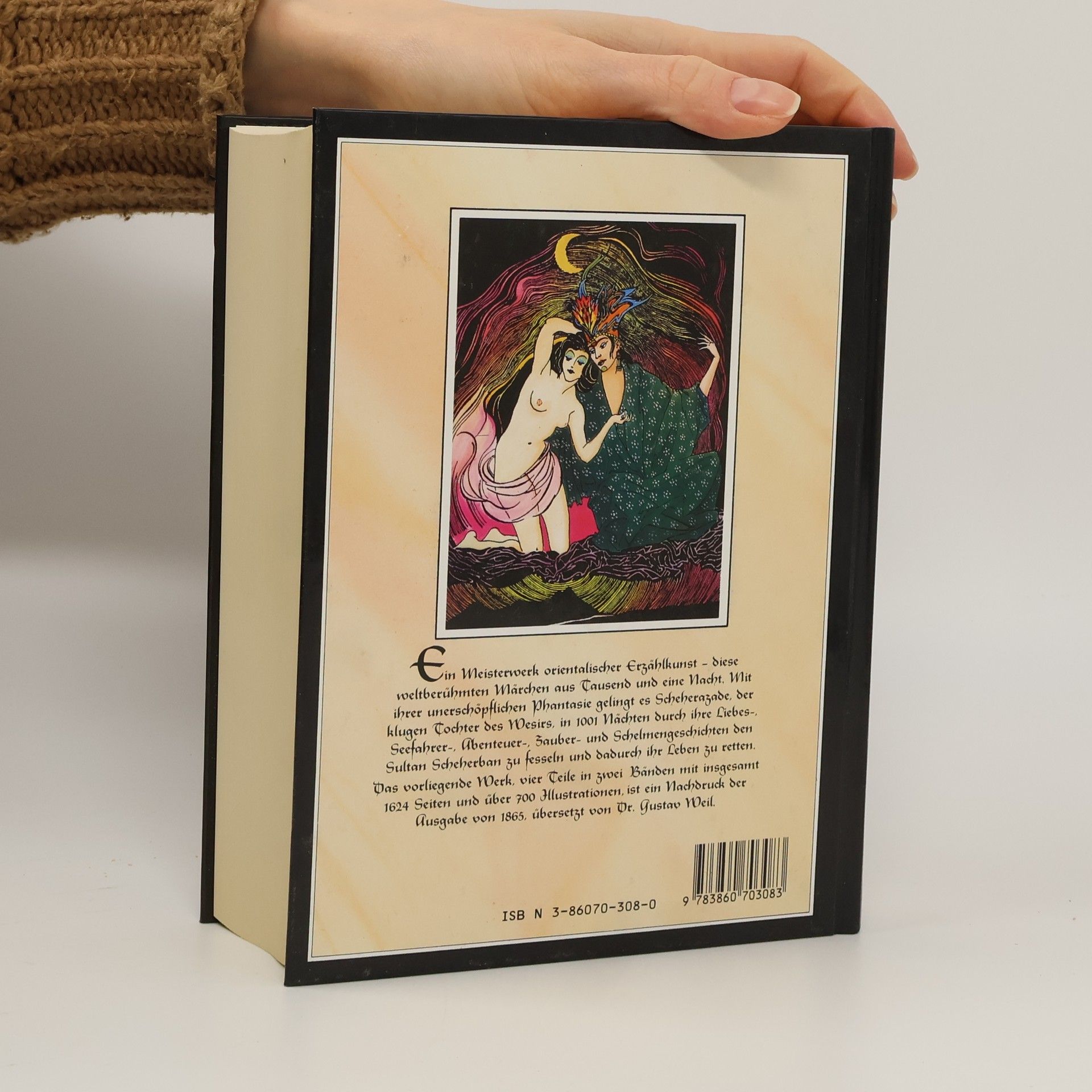 Die vorliegende Ausgabe bringt neben über 700 Illustrationen die vollständige, werkgetreue und erste deutsche Übersetzung aus arabischen Originaltexten von dem Orientalisten Gustav Weil (1808-1889). Die bekannten morgenländischen Erzählungen über Aladdin und die Wunderlampe, Ali Baba und die vierzig Räuber und Sindbad, dem Seefahrer, eingebettet in die Rahmengeschichte um den eifersüchtigen König Schehrijâr, der eine Frau nach der anderen direkt nach der Hochzeitsnacht ermordet und erst von der klugen Schehrezâd überlistet wird, begeistern seit eh und je Jung und Alt.
