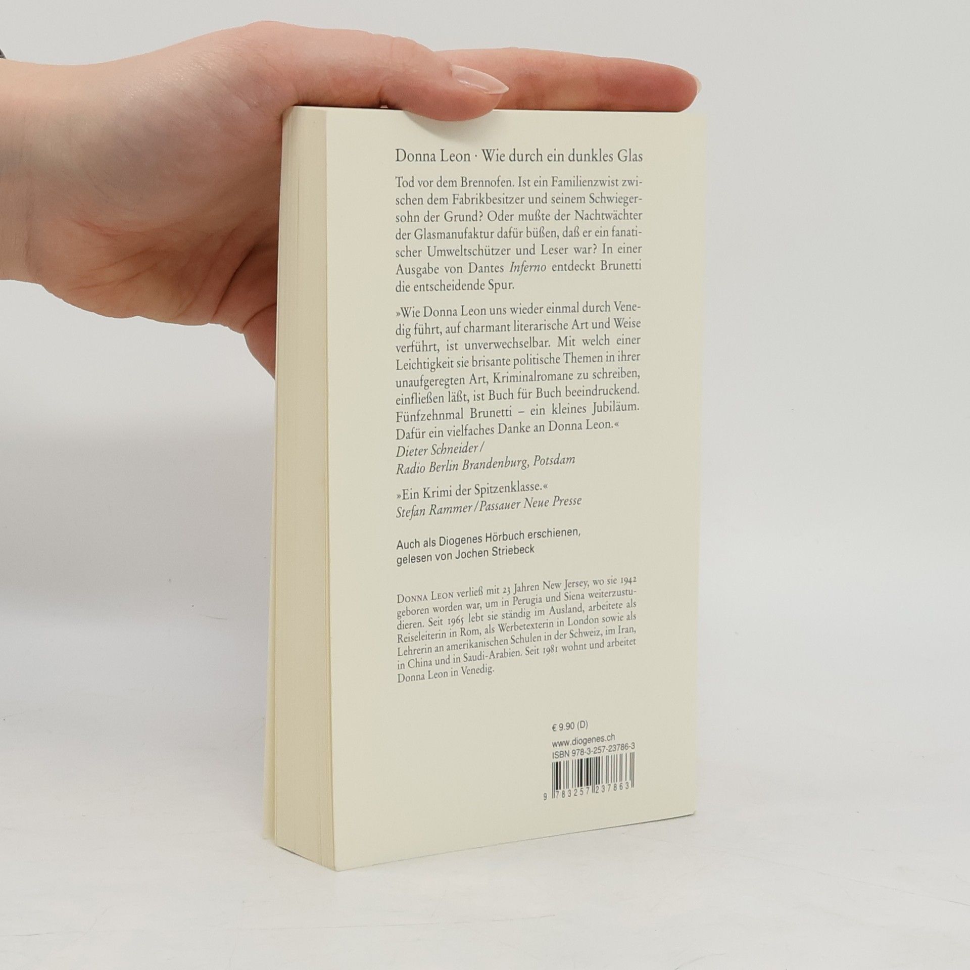 Tod vor dem Brennofen. Ist ein Familienzwist zwischen dem Fabrikbesitzer und seinem Schwiegersohn schuld? Oder musste der Nachtwächter der Glasmanufaktur dafür büßen, dass er ein fanatischer Umweltschützer und Leser ist? In einer Ausgabe von Dantes Inferno entdeckt Brunetti die entscheidende Spur.