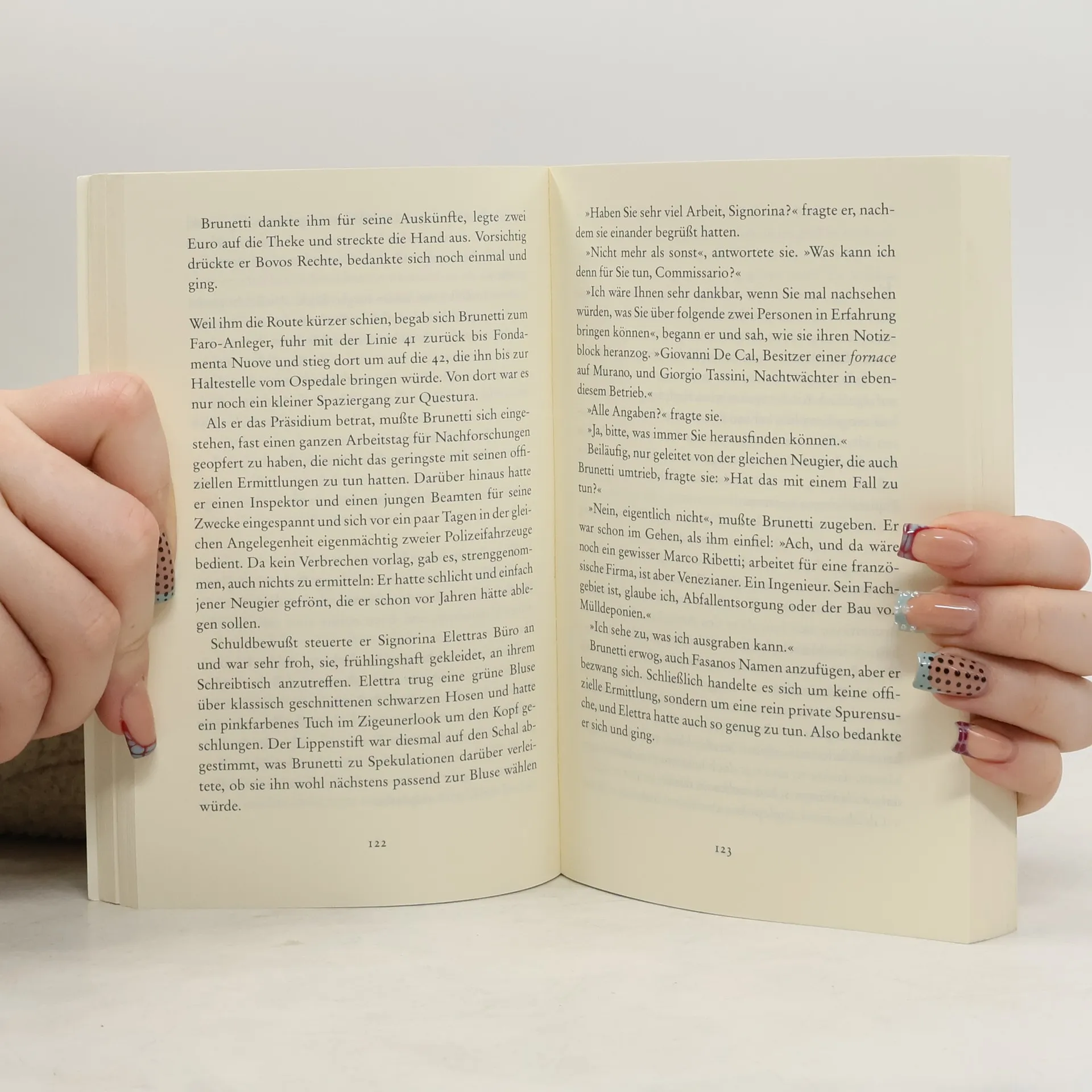 Tod vor dem Brennofen. Ist ein Familienzwist zwischen dem Fabrikbesitzer und seinem Schwiegersohn schuld? Oder musste der Nachtwächter der Glasmanufaktur dafür büßen, dass er ein fanatischer Umweltschützer und Leser ist? In einer Ausgabe von Dantes Inferno entdeckt Brunetti die entscheidende Spur.