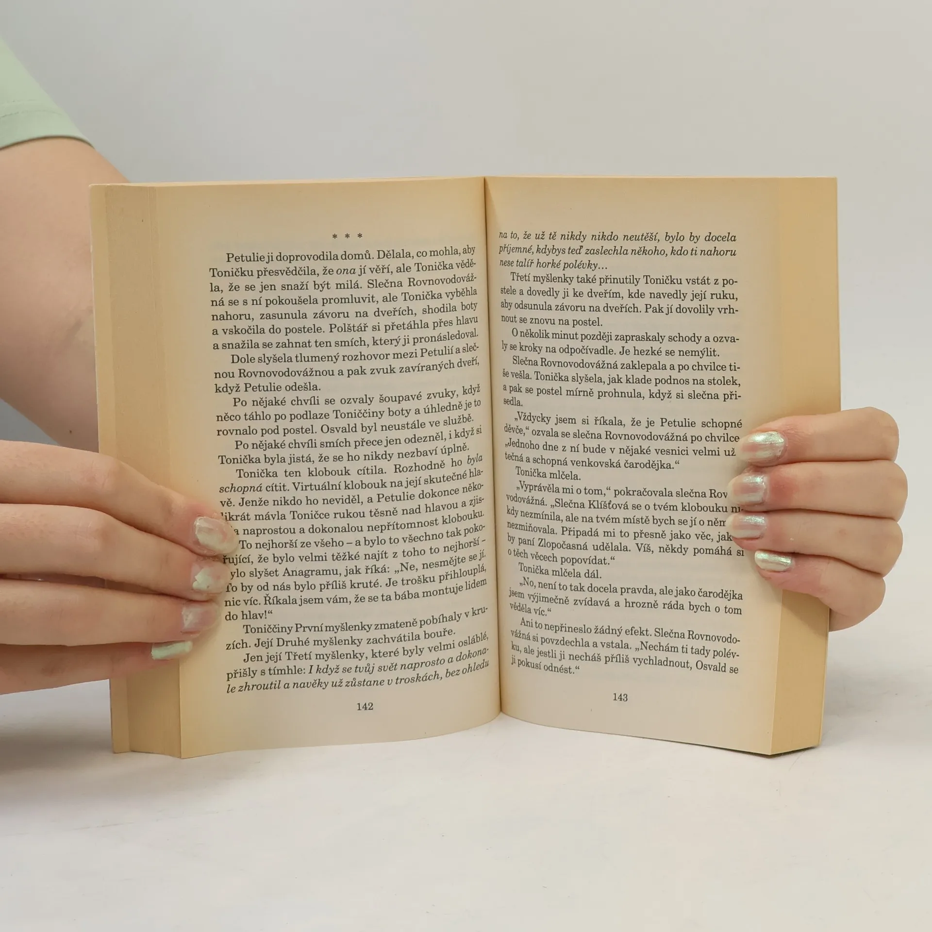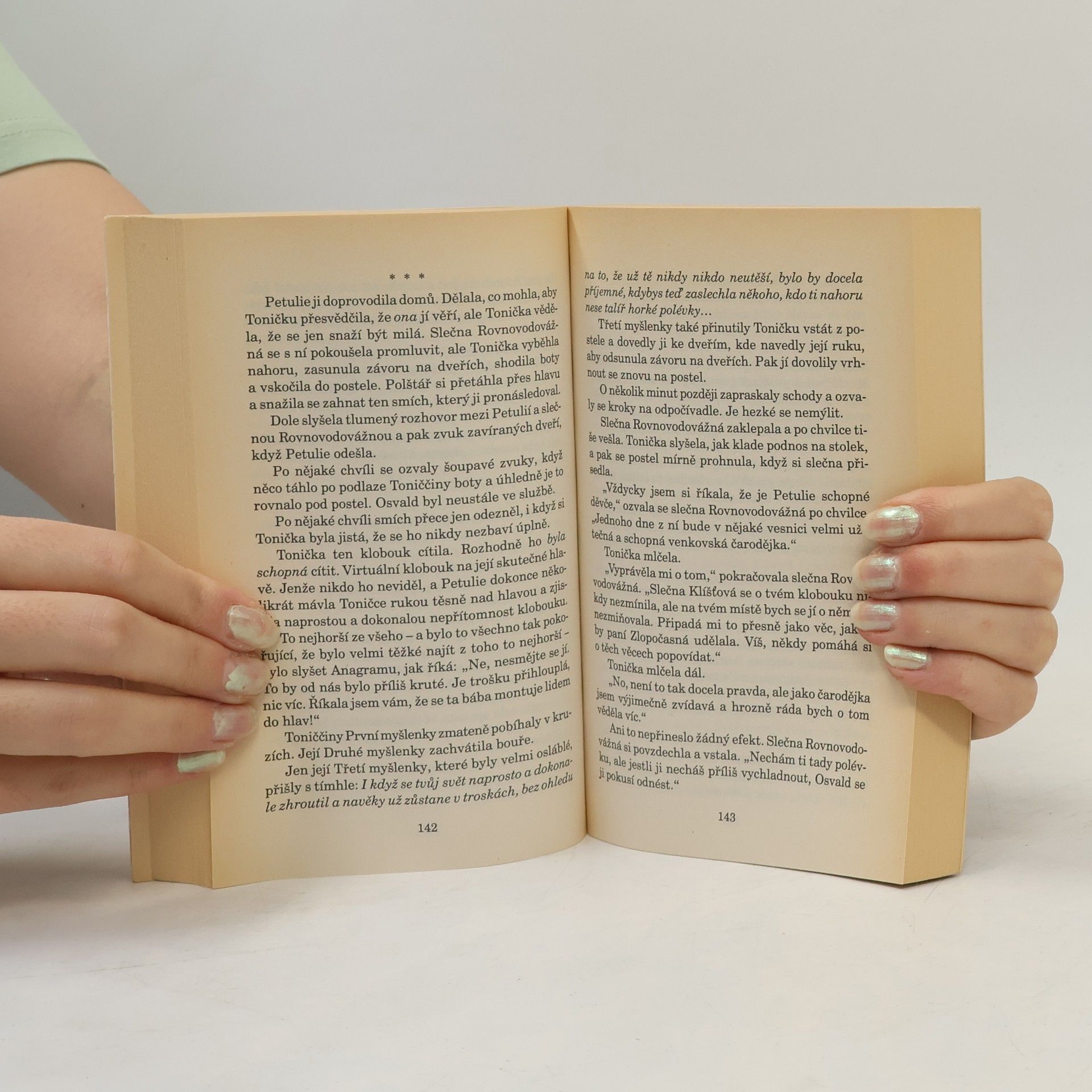 Hlavní hrdinkou této knížky je už 11letá Tonička Bolavá z Křídy, která se dva roky poté, co zjistila, že má talent pro čarování, vydává do učení. Dostává se ke slečně Rovnovodovážné v horách, kde se učí každodennímu řemeslu čarodějek, spočívajícím v obyčejné pomoci ostatním lidem. To se ale brzo mění, protože se jí snaží vystopovat nebezpečný zlojroj, jenž chce ovládnout její mysl i tělo. V nejhorších chvílích jí naštěstí pomůžou nejen její známí Nac mac Fíglové, ale také Bábi Zlopočasná, nejlepší čarodějka (i když čarodějky žádné náčelnice nemají) Zeměplochy. Tonička tak získá nejenom respekt okolí a přátelství Esmé Zlopočasné (což budí úctu všech ostatních čarodějek včetně Toniččiných kamarádek), ale také pochopí, co to znamená být skutečnou čarodějkou.