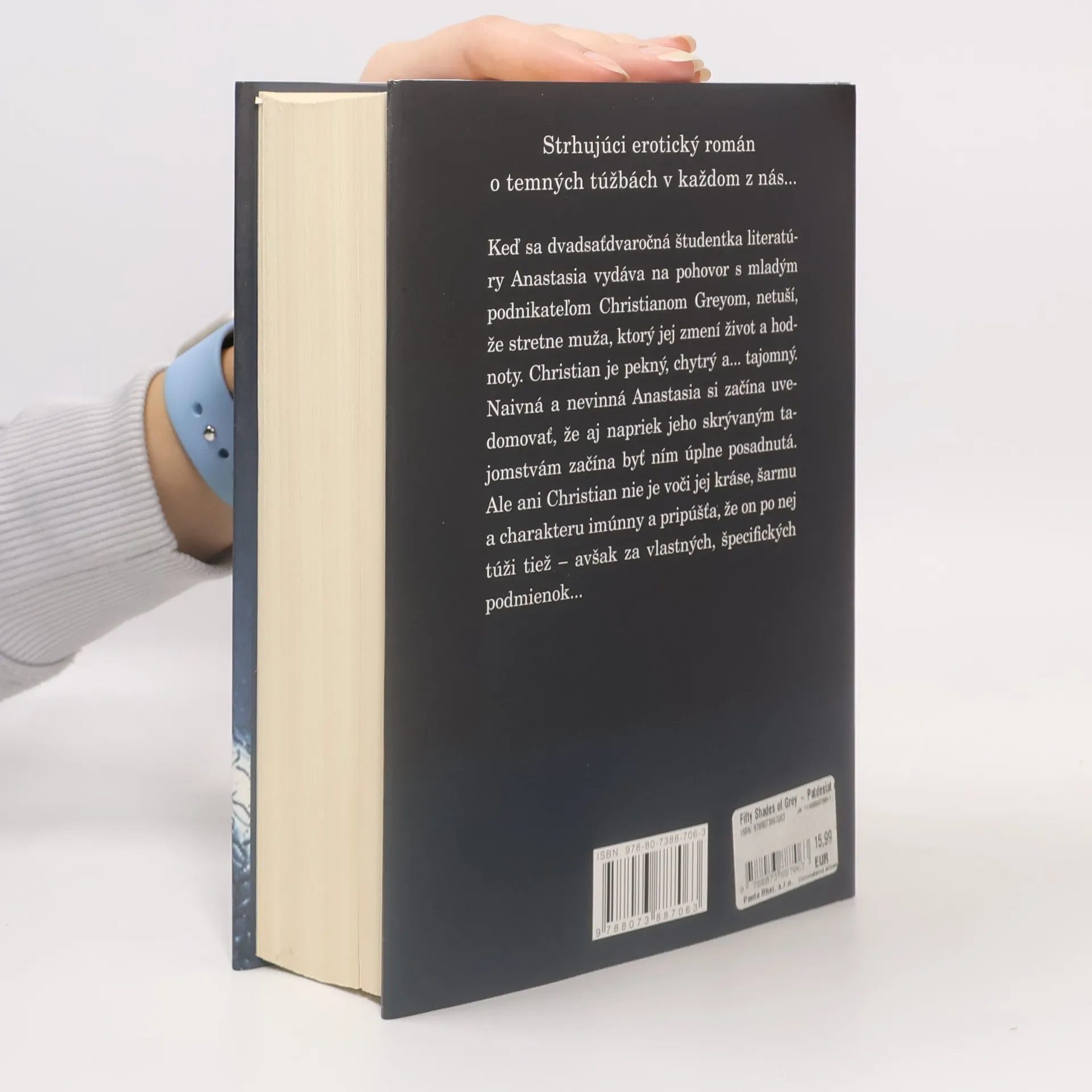 Strhujúci erotický román o temných túžbach v každom z nás... Keď sa dvadsaťdvaročná študentka literatúry Anastasia vydáva na pohovor s mladým podnikateľom Christianom Greyom, netuší, že stretne muža, ktorý jej zmení život a hodnoty. Christian je pekný, chytrý, a... tajomný. Naivná a nevinná Anastasia si začína uvedomovať, že aj napriek jeho skrývanému tajomstvu, začína byť nim úplne posadnutá. Ale ani Christian nie je voči jej kráse, šarmu a charakteru imúnny a pripúšťa že on po nej tiež túži – avšak za vlastných, špecifických podmienok...
