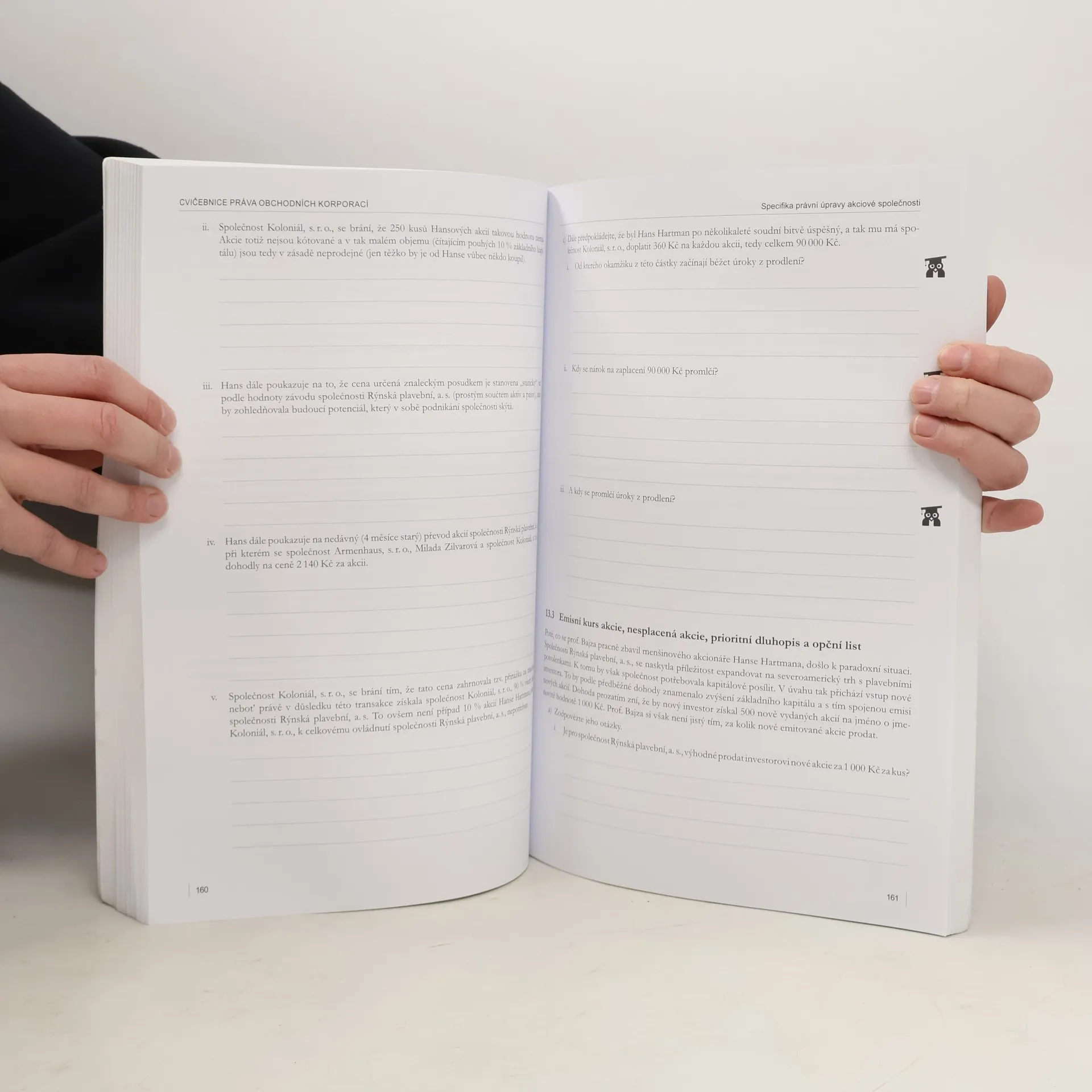 Cvičebnice práva obchodních korporací vznikla jako učební pomůcka pro jednosemestrální kurz Obchodní právo II, který je na Právnické fakultě Masarykovy univerzity vyučován jako povinný předmět v 5. semestru (3. ročníku) studijního programu Právo a právní věda. Smyslem tohoto předmětu je studentům zpřístupnit základní znalosti a orientaci v oblasti práva obchodních korporací. Kromě přednášek je výuka v Obchodním právu II realizována ve 12 seminářích, které probíhají jednou týdně v rozsahu 100 minut. Tuto cvičebnici práva obchodních korporací jsme sepsali jako ucelenou sbírku příkladů, která by měla studentům posloužit jako podklad k seminární výuce, a tedy i jako studijní opora pro přípravu ke zkoušce.