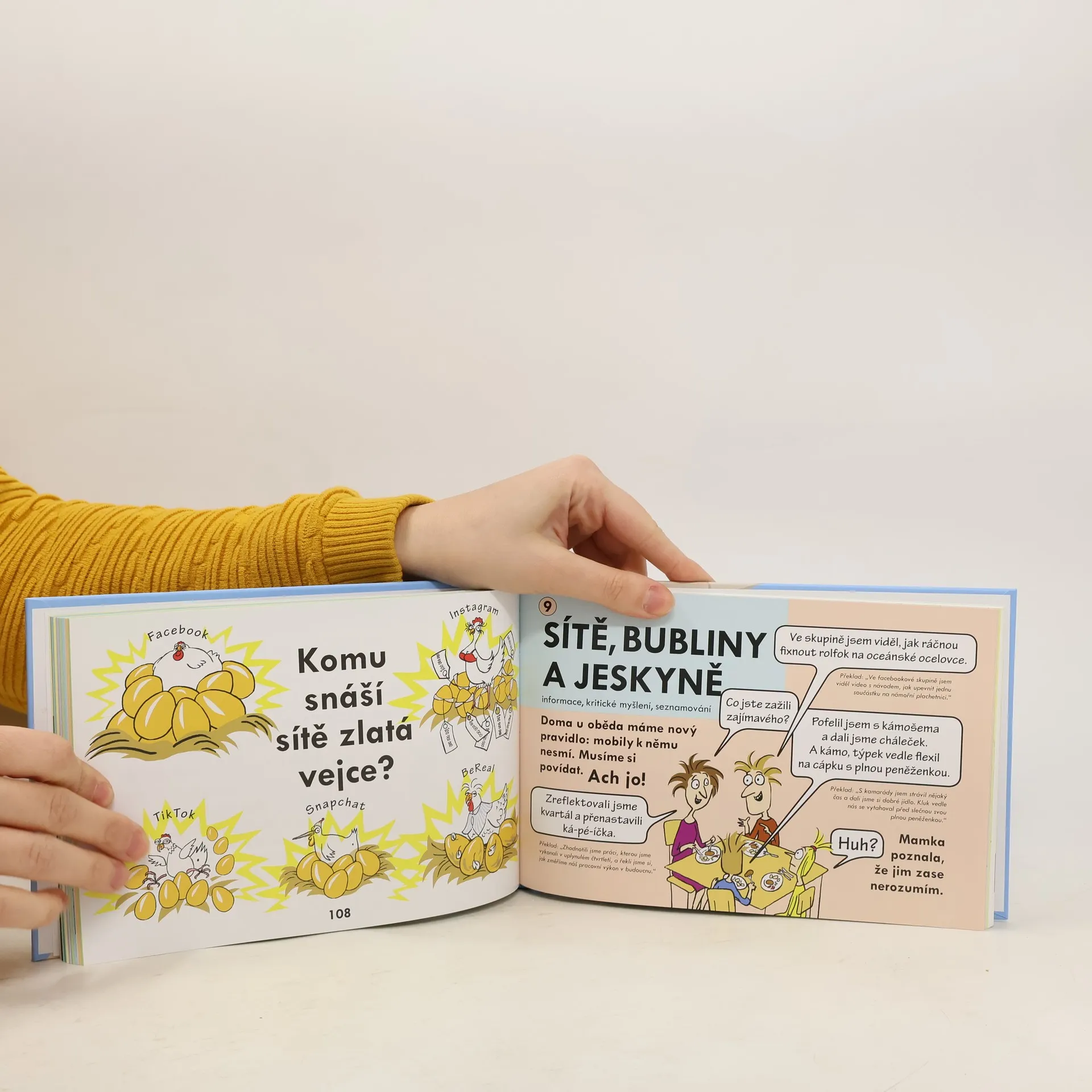 „Dvojkniha“ radí dětem s legrací v komiksu a dospělým podrobnějším textem: jak se v online světě pohybovat bezpečněji, zůstat zdraví a poradit si s problémy. Jde o volné pokračování bestselleru Hustej internet. S odbornou garancí Linky bezpečí. Dotýká se témat: *sociální sítě, výzvy a rady *vnímání sebe, kult krásy a kyberšikana *roztříštěná pozornost a závislosti *emoce, šíření vzteku a zkažený obsah *zkreslené informace a kritické myšlení *umělá inteligence, učení i obavy *odolnost, cvičení a tělo *stres, spánek a duševní zdraví.