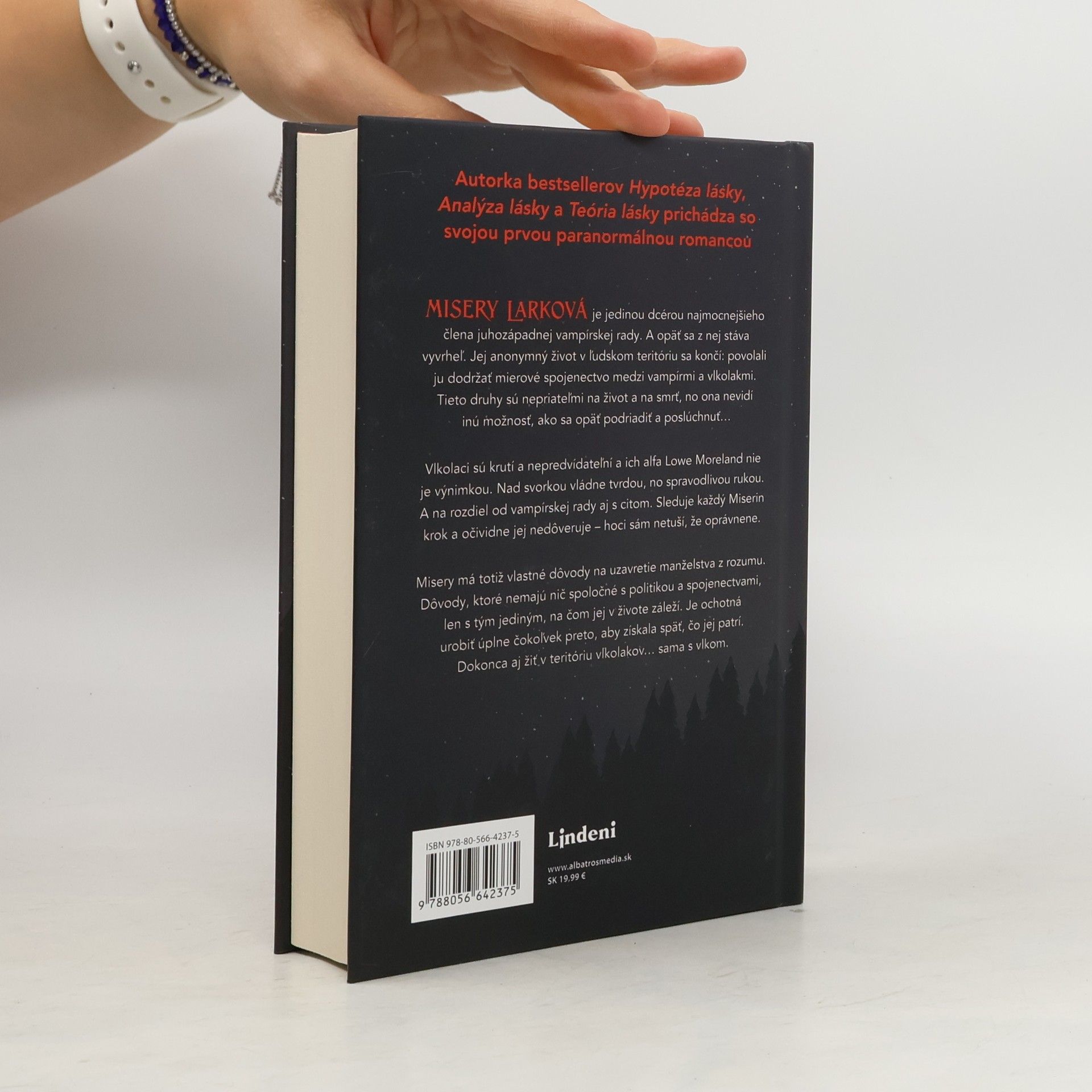 Paranormálna romanca od autorky bestsellerov Hypotéza lásky, Analýza lásky a Teória lásky. Misery Larková je jedinou dcérou najmocnejšieho člena juhozápadnej vampírskej rady. A opäť sa z nej stáva vyvrheľ. Jej anonymný život v ľudskom teritóriu sa končí: povolali ju dodržať mierové spojenectvo medzi vampírmi a vlkolakmi. Tieto druhy sú nepriateľmi na život a na smrť, no ona nevidí inú možnosť, ako sa opäť podriadiť a poslúchnuť... Vlkolaci sú krutí a nepredvídateľní a ich alfa Lowe Moreland nie je výnimkou. Nad svorkou vládne tvrdou, no spravodlivou rukou. A na rozdiel od vampírskej rady aj s citom. Sleduje každý Miserin krok a očividne jej nedôveruje – hoci sám netuší, že oprávnene. Misery ma totiž vlastné dôvody na uzavretie manželstva z rozumu. Dôvody, ktoré nemajú nič spoločné s politikou a spojenectvami, len s tým jediným, na čom jej v živote záleží. Je ochotná urobiť úplne čokoľvek preto, aby získala späť, čo jej patrí. Dokonca aj žiť v teritóriu vlkolakov... sama s vlkom.