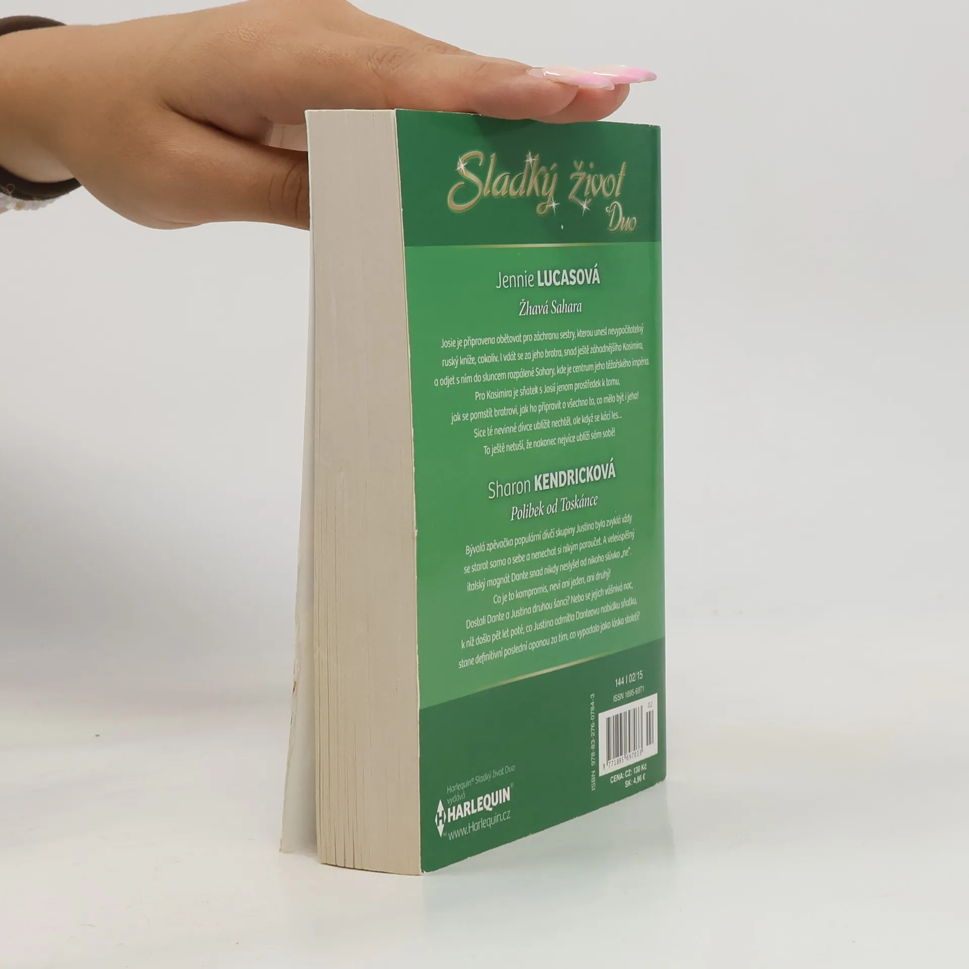 Jennie Lucasová Žhavá Sahara Josie je připravena obětovat pro záchranu sestry, kterou unesl nevypočitatelný ruský kníže, cokoliv. I vdát se za jeho bratra, snad ještě záhadnějšího Kasimira, a odjet s ním do sluncem rozpálené Sahary, kde je centrum jeho těžařského impéria. Pro Kasimira je sňatek s Josií jenom prostředek k tomu, jakse pomstít bratrovi, jak ho připravit o všechno to, co mělo být i jeho! Sice té nevinné dívce ublížit nechtěl, ale když se kácí les To ještě netuší, že nakonec nejvíce ublíží sám sobě! Sharon Kendricková Polibek od Toskánce Bývalá zpěvačka populární dívčí skupiny Justina byla zvyklá vždy starat se sama o sebe a nenechat si nikým poroučet. A veleúspěšný italský magnát Dante snad nikdy neslyšel od nikoho slůvko "ne". Co je to kompromis, neví ani jeden, ani druhý! Dostali Dante a Justina druhou šanci? Nebo se jejich vášnivá noc, k níž došlo pět let poté, co Justina odmítla Danteovu nabídku sňatku, stane definitivní poslední oponou za tím, co vypadalo jako láska století?