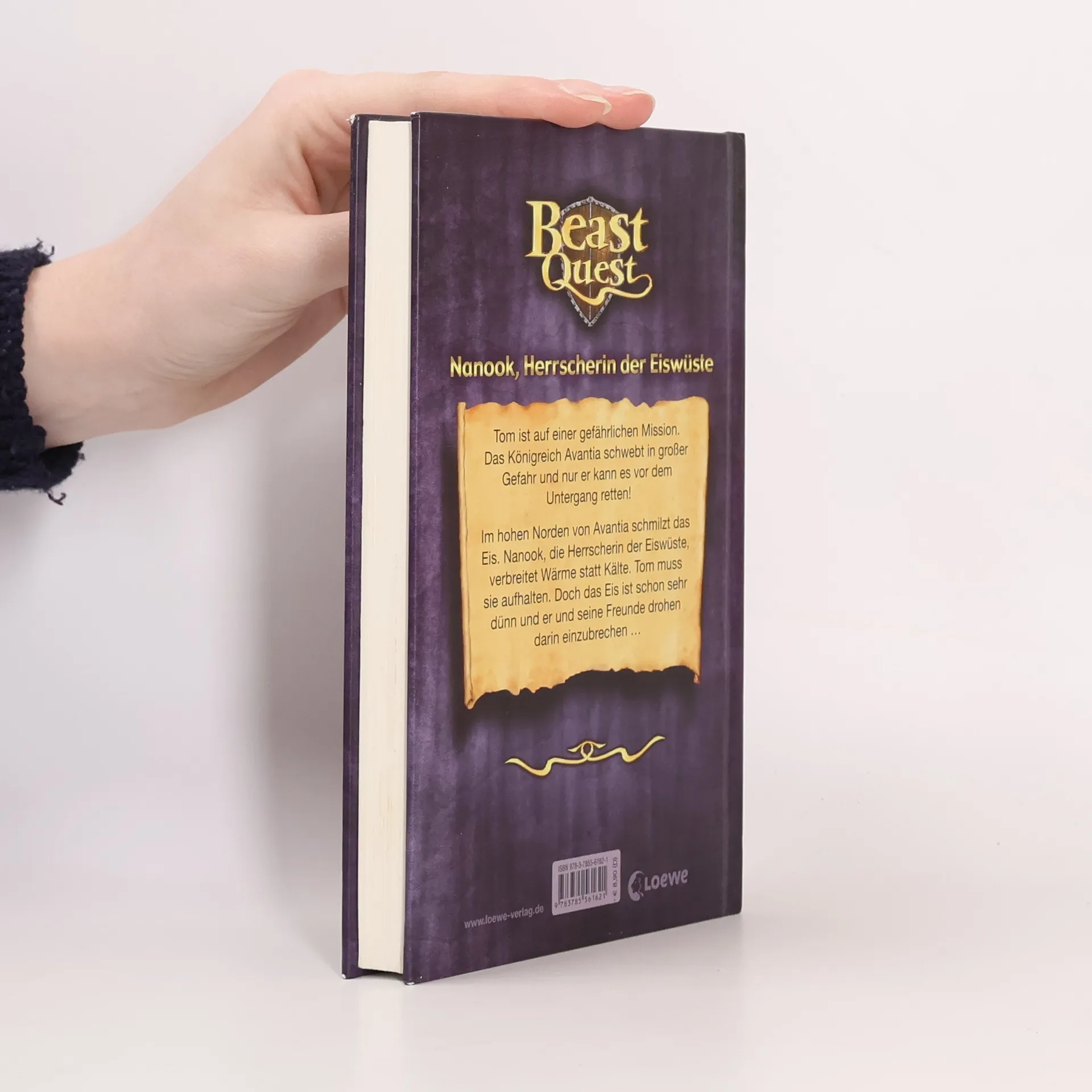 Einst wurde das Land Avantia von 6 mächtigen Fabelwesen beschützt. Doch der böse Zauberer Malvel hat sie in wütende Ungeheuer verwandelt. Magische Fesseln halten sie in Bann. Vom guten Magier Aduro wurde Tom beauftragt, die Bestien und so auch das Land vom Fluch zu befreien. 4 dieser Wesen haben Tom und seine treuen Gefährten, das Pferd Storm, die mutige Elenna und ihre zahmer Wolf Silver, schon in harten, durchaus dramatisch skizzierten Kämpfen erlöst (Band 1-4: BA 4/08; Band 6 in dieser Nr.). - Diesmal ziehen die Helden gegen Nanook in der nördlichen Eiswüste aus. Im Fluch gefangen, verbreitet sie mit ungeheuren Klimaschwankungen, Stürmen und brechendem Eis Schrecken, bis sie von Tom und den Freunden aufgespürt, von ihrer Kettenglocke und damit vom Fluch befreit wird. Auch diese Folge ist nach bekanntem, auf mehr oder weniger glaubhafte Action ausgerichtetem Muster gestrickt, nachdem eine Eingangsszene den Blick auf die Kulisse des kommenden Abenteurers gerichtet hat. - Wie alle Folgen als vor allem Jungen stimulierendes Lesefutter mit reißerischem Touch einsetzbar - ab mittleren Beständen. . - Einst hat Nanook, die Herrscherin der Eiswüste, Land und Leute im Norden von Avantia beschützt. Jetzt hat ein Fluch des Magiers Malvel sie in eine wütende, alles verheerende Bestie verzaubert. Tom und Elenna ziehen aus, das Schneemonster im Kampf zu bezwingen und so vom bannenden Fluch zu erlösen. Ab 8.