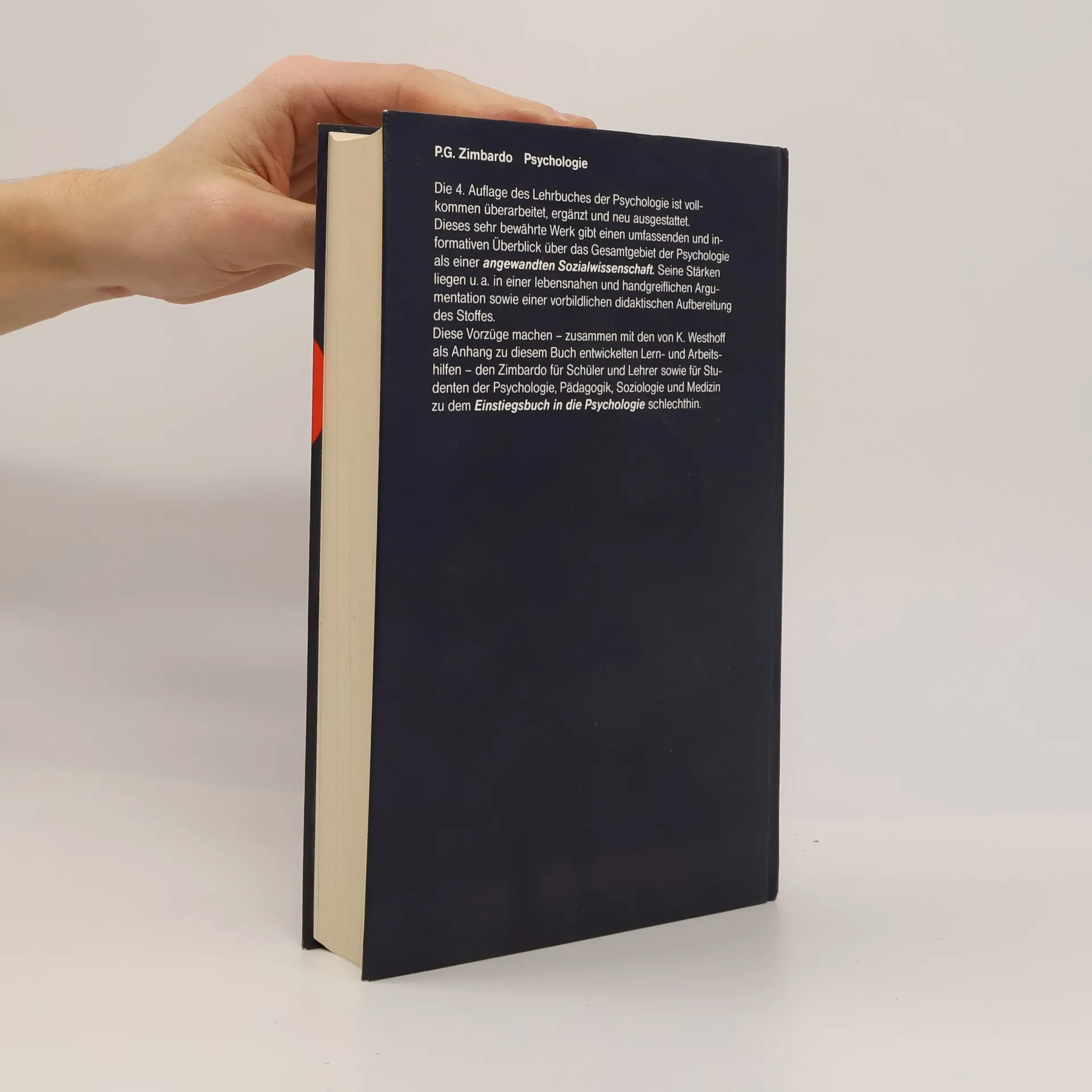 Der „Zimbardo“ gibt einen umfassenden Einstieg in die verschiedenen Bereiche der Psychologie. Dabei wird Psychologie als Wissenschaft verstanden, um hierauf aufbauend die Anwendungsbereiche für das tägliche Leben darzustellen. der Schwerpunkt liegt auf der Sozial- und auf der Kognitionspsychologie. Durch die verständliche und anschauliche Darstellungsweise bietet das Buch einen leichten Einstieg und dient als hervorragendes Nachschlagewerk für alle Grundlagen der Psychologie.