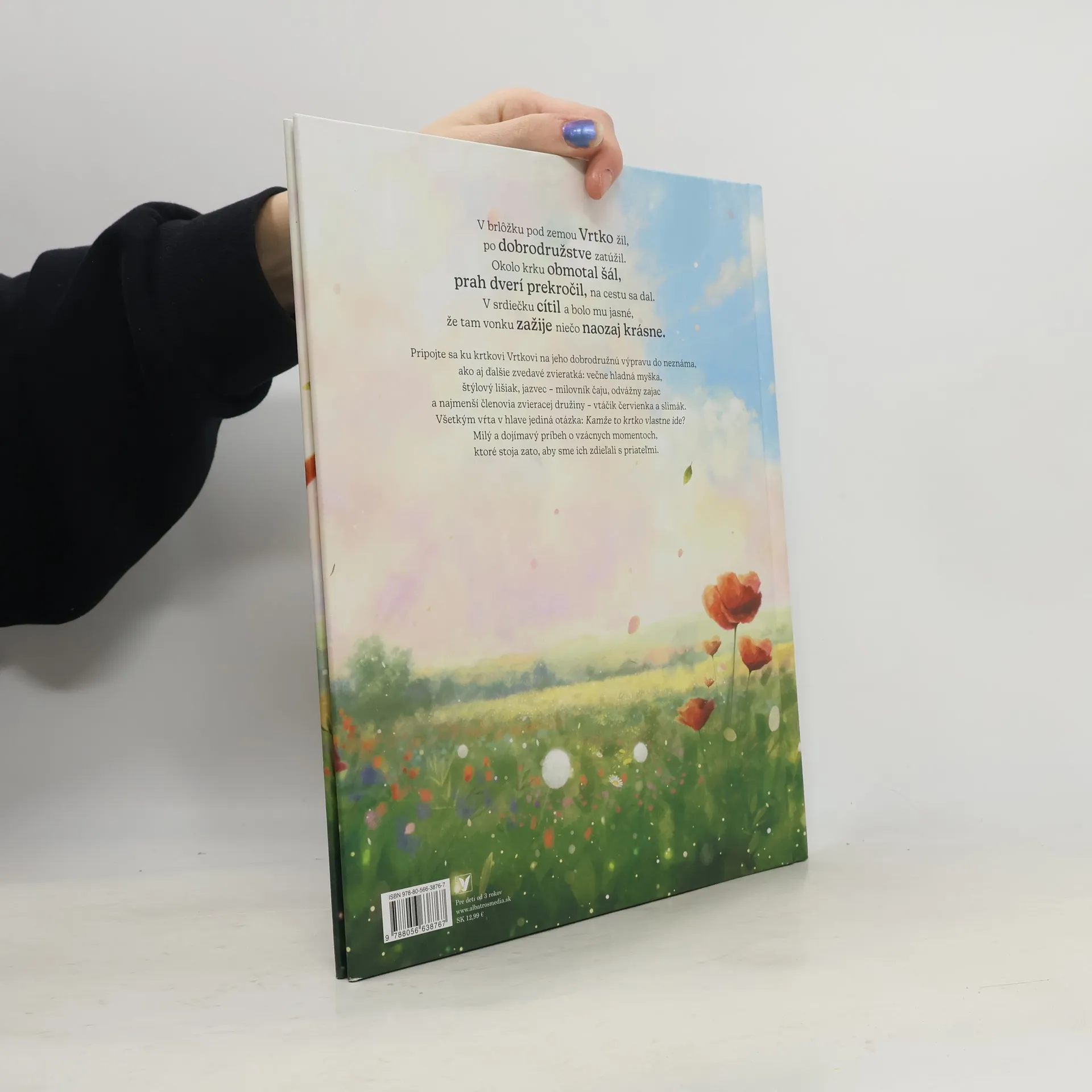 Pripojte sa ku krtkovi Vrtkovi na jeho dobrodružnú výpravu do neznáma, ako aj ďalšie zvedavé zvieratká: večne hladná myška, štýlový lišiak, jazvec – milovník čaju, odvážny zajac a najmenší členovia zvieracej družiny – vtáčik červienka a slimák. Všetkým vŕta v hlave jediná otázka: Kamže to krtko vlastne ide? Milý a dojímavý príbeh o vzácnych momentoch, ktoré stoja zato, aby sme ich zdieľali s priateľmi.