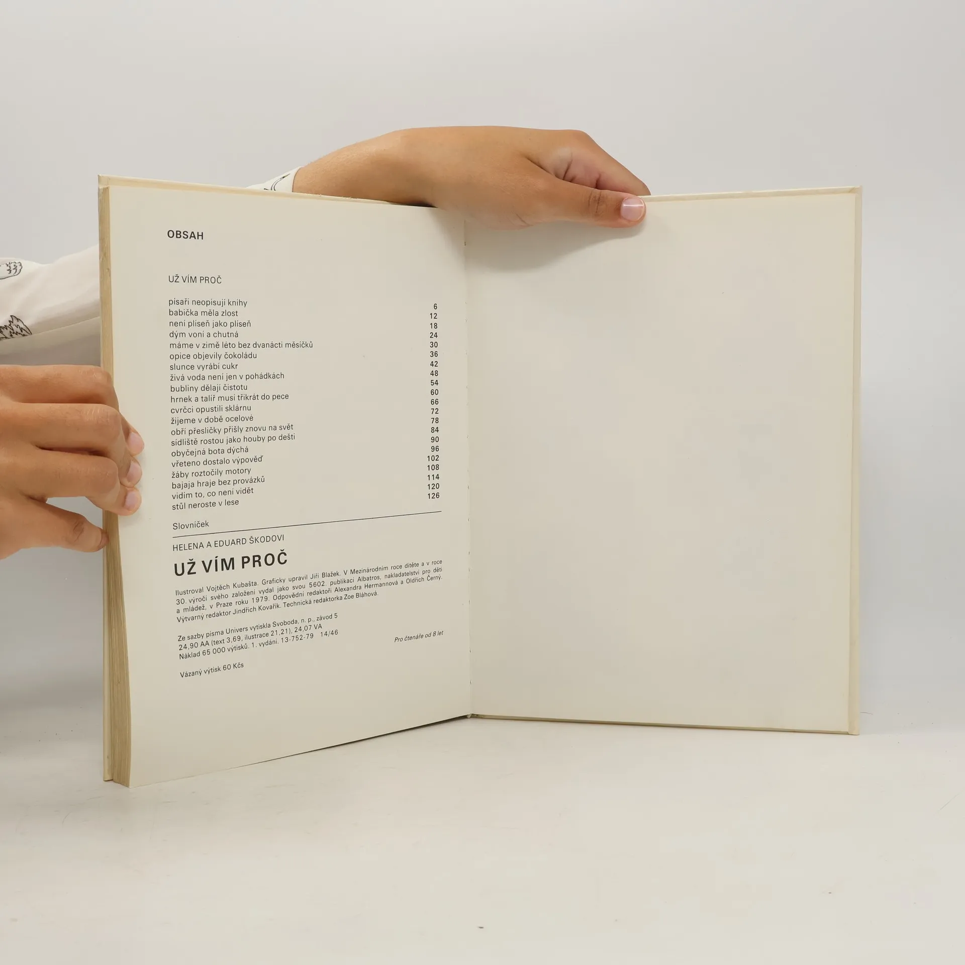 Z této knížky se dozvíte nejen o historii, vzniku a výrobě sýrů, chleba, uzenin, mrazených výrobků, ale také o látce na šaty, mýdle, skle a porcelánu, zrodu knih a knihovniček, pochopíte leccos z tajů elektřiny a televizního přenosu a jiných, nejméně zajímavých věcí.