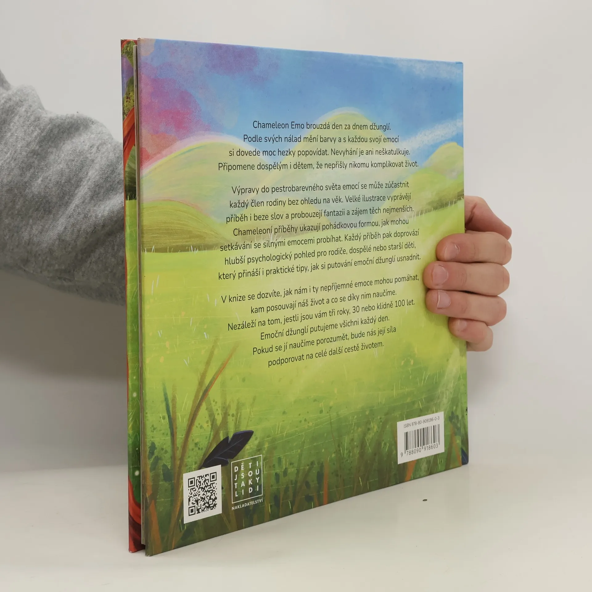 Chameleon Emo brouzdá den za dnem džunglí. Podle svých nálad mění barvy a s každou svojí emocí si dovede moc hezky popovídat. Nevyhání je ani neškatulkuje. Připomene dospělým i dětem, že nepřišly nikomu komplikovat život.