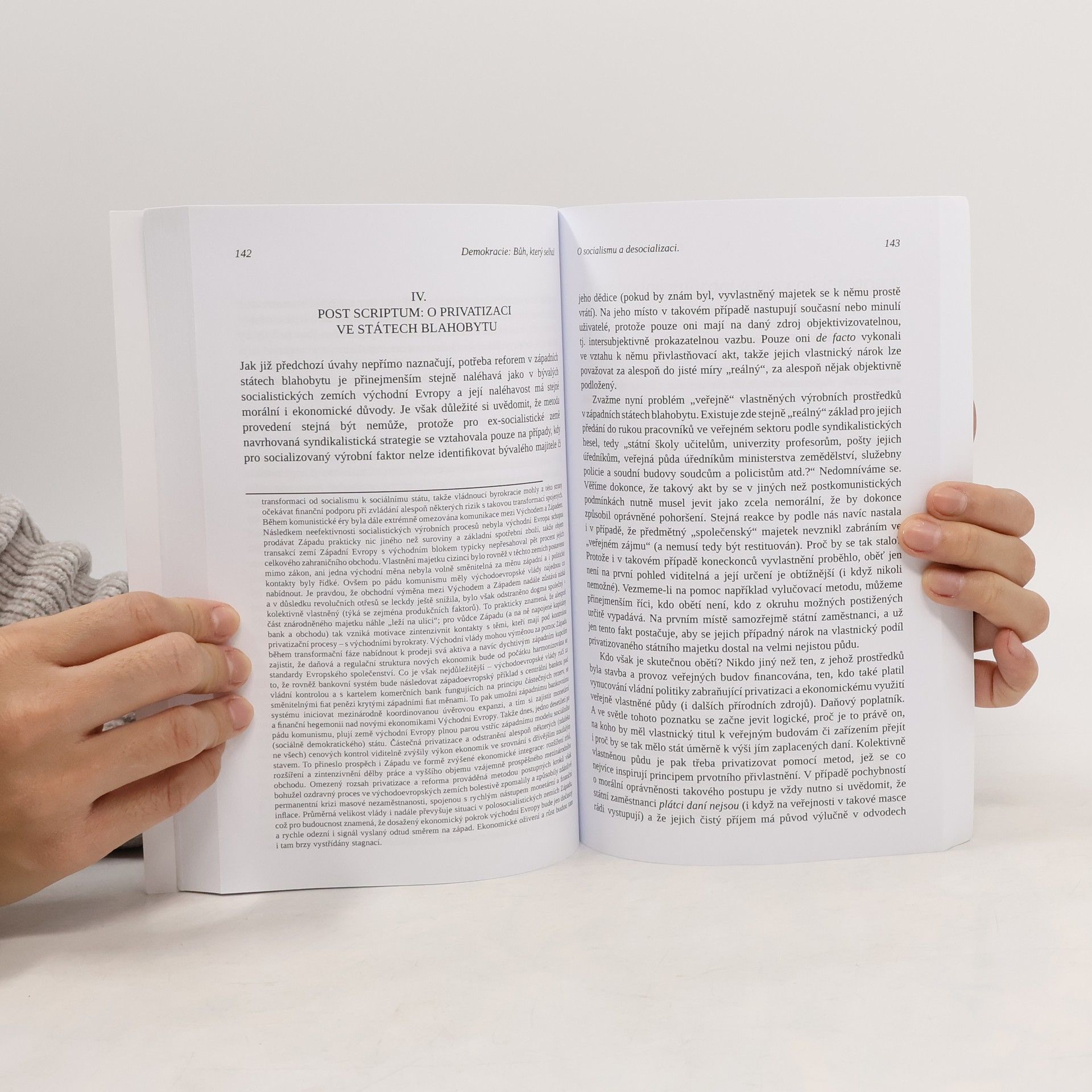 Tato rozsáhlá kniha je pojednáním o historické transformaci Západu od omezené monarchie k neomezené demokracii. Revizionisticky dochází k závěru, že monarchie je se všemi svými nedostatky menším zlem než masová demokracie. Zaměřením se na tuto transformaci od soukromé k veřejné vládě je autor schopen interpretovat mnoho historických jevů, jako je rostoucí úroveň kriminality, degenerace norem chování a morálky, pokles bezpečnosti a svobody a růst megastátu. Hoppe navíc dekonstruuje klasickou liberální víru v možnost omezené vlády a vyzývá ke sblížení konzervatismu a libertariánství jako přirozených spojenců se společnými cíli. Autor dále hodnotí vyhlídky na dosažení přirozeného řádu svobody. Demokracie: Bůh, který selhal je brilantní dílo, které bude intenzivně zajímat vědce a studenty historie, politické ekonomie a politické filozofie.