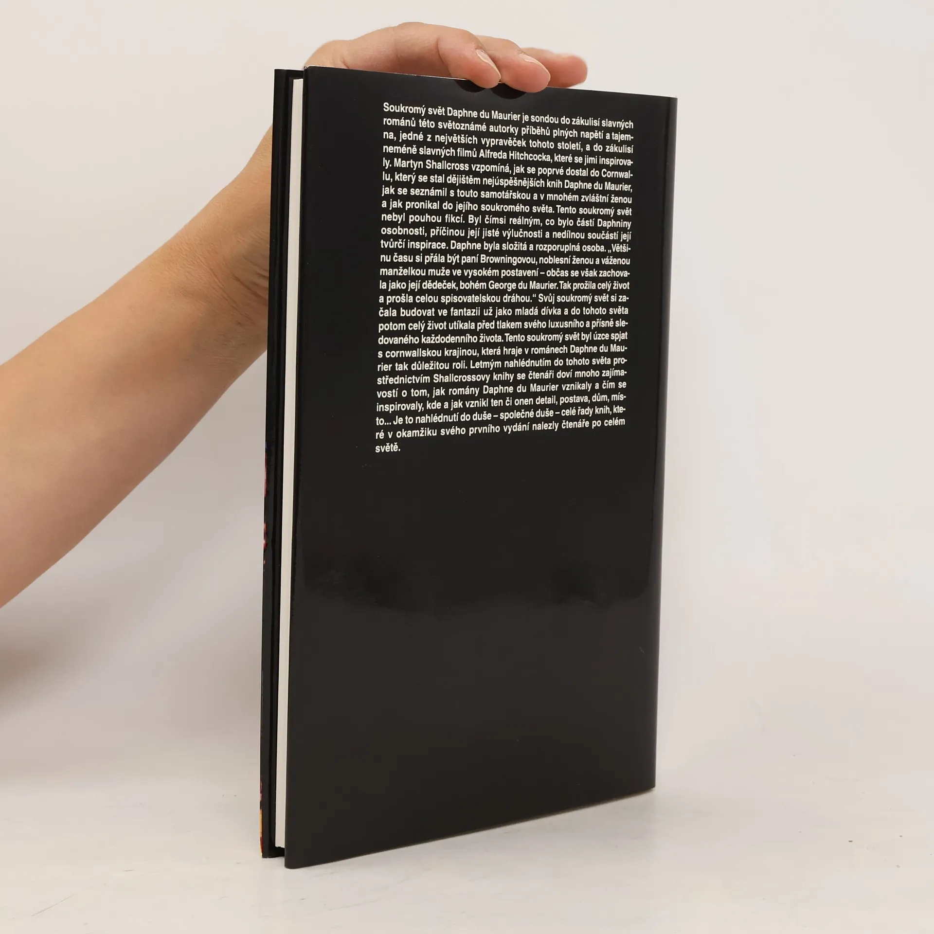 Kniha shromažďuje vnější zajímavosti ze života slavné autorky s převahou údajů o filmových adaptacích jejího díla. Soukromý svět Daphne du Maurier je sondou do zákulisí slavných románů této světoznámé autorky příběhů plných napětí a tajemna, jedné z největších vypravěček minulého století, a do zákulisí neméně slavných filmů Alfreda Hitchcocka, které se jimi inspirovaly. Martyn Shallcross vzpomíná, jak se poprvé dostal do Cornwallu, který se stal dějištěm nejúspěšnějších knih Daphne du Maurier, jak se seznámil s touto samotářskou a v mnohém zvláštní ženou a jak pronikal do jejího soukromého světa.