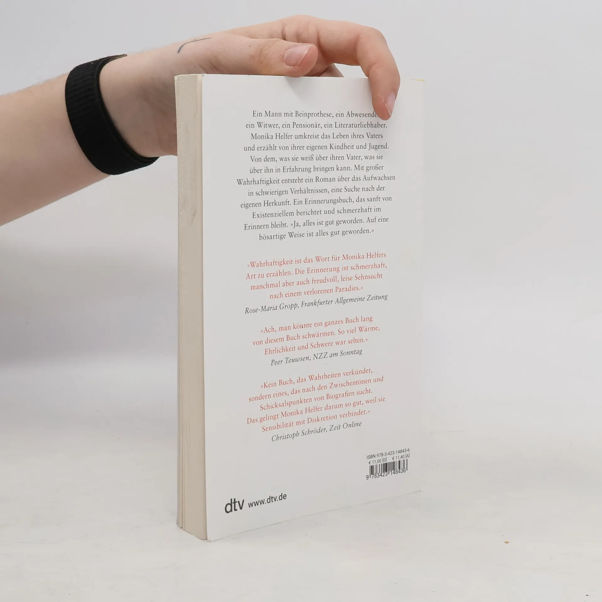Das berührende Porträt einer Nachkriegsgeneration Ein Mann mit Beinprothese, ein Abwesender, ein Witwer, ein Pensionär, ein Literaturliebhaber. Monika Helfer umkreist das Leben ihres Vaters und erzählt von ihrer eigenen Kindheit und Jugend. Von dem vielen Platz und der Bibliothek im Kriegsopfer-Erholungsheim in den Bergen, von der Armut und den beengten Lebensverhältnissen. Von dem, was sie weiß über ihren Vater, was sie über ihn in Erfahrung bringen kann. Mit großer Wahrhaftigkeit entsteht ein Roman über das Aufwachsen in schwierigen Verhältnissen, eine Suche nach der eigenen Herkunft. Ein Erinnerungsbuch, das sanft von Existenziellem berichtet und schmerzhaft im Erinnern bleibt. »Ja, alles ist gut geworden. Auf eine bösartige Weise ist alles gut geworden.«