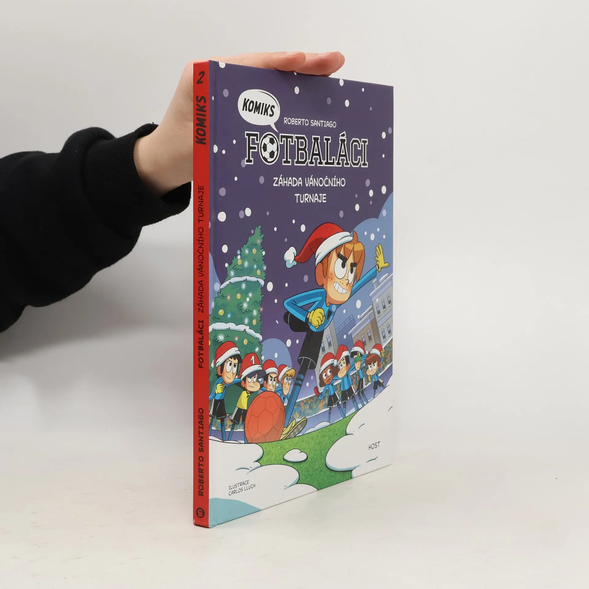 Fotbaláci mají vlastní komiks? No jasně! Když bylo Robertu Santiagovi třináct let, vyhrál s týmem ze své školy San Augustín fotbalový turnaj. Dnes je z něj známý spisovatel, ovšem na svou dávnou výhru a tehdejší kamarády stále vzpomíná. Právě proto napsal Fotbaláky. Úspěšná série má už pětadvacet dílů a nově k nim přibyl také komiks. Vánoční fotbalový turnaj má dvě velmi zvláštní, ale naprosto posvátná pravidla. Všichni hráči musí mít po celou dobu hry na hlavě červenou čepici s bambulí. Druhé pravidlo je o něco zábavnější — v poslední minutě zápasu na ně může každý bez omezení házet sněhové koule! Pro někoho legrace, ovšem pro soutěživé hráče je to veliká komplikace. Jak takový vánoční turnaj dopadne? Nechte se překvapit!