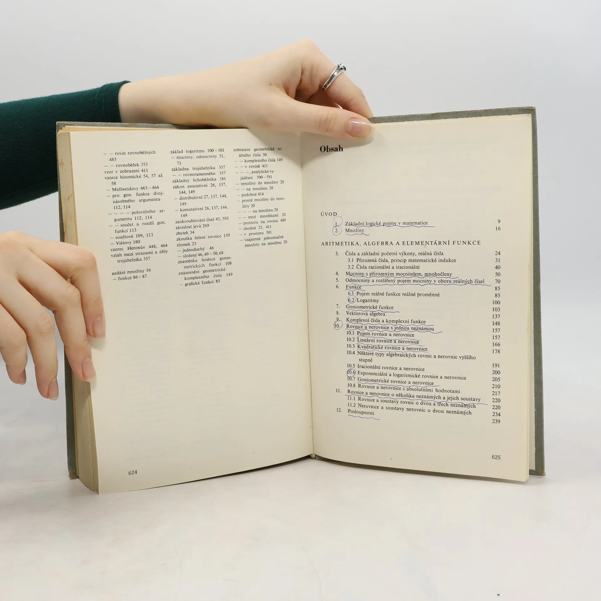 Kniha neobsahuje pouze definice a věty ze středoškolské matematiky, ale pomocí několika set ilustrativních příkladů a tisíce dalších úloh chce studujícím umožnit dokonalé zvládnutí látky a správnou aplikaci matematických vzorců. Většina příkladů je řešená, u některých jsou pouze výsledky nebo návod k řešení. Přehled navazuje na středoškolské učebnice matematiky, ale nesleduje jejich rozdělení látky, nýbrž je utříděn podle jednotlivých matematických oborů.