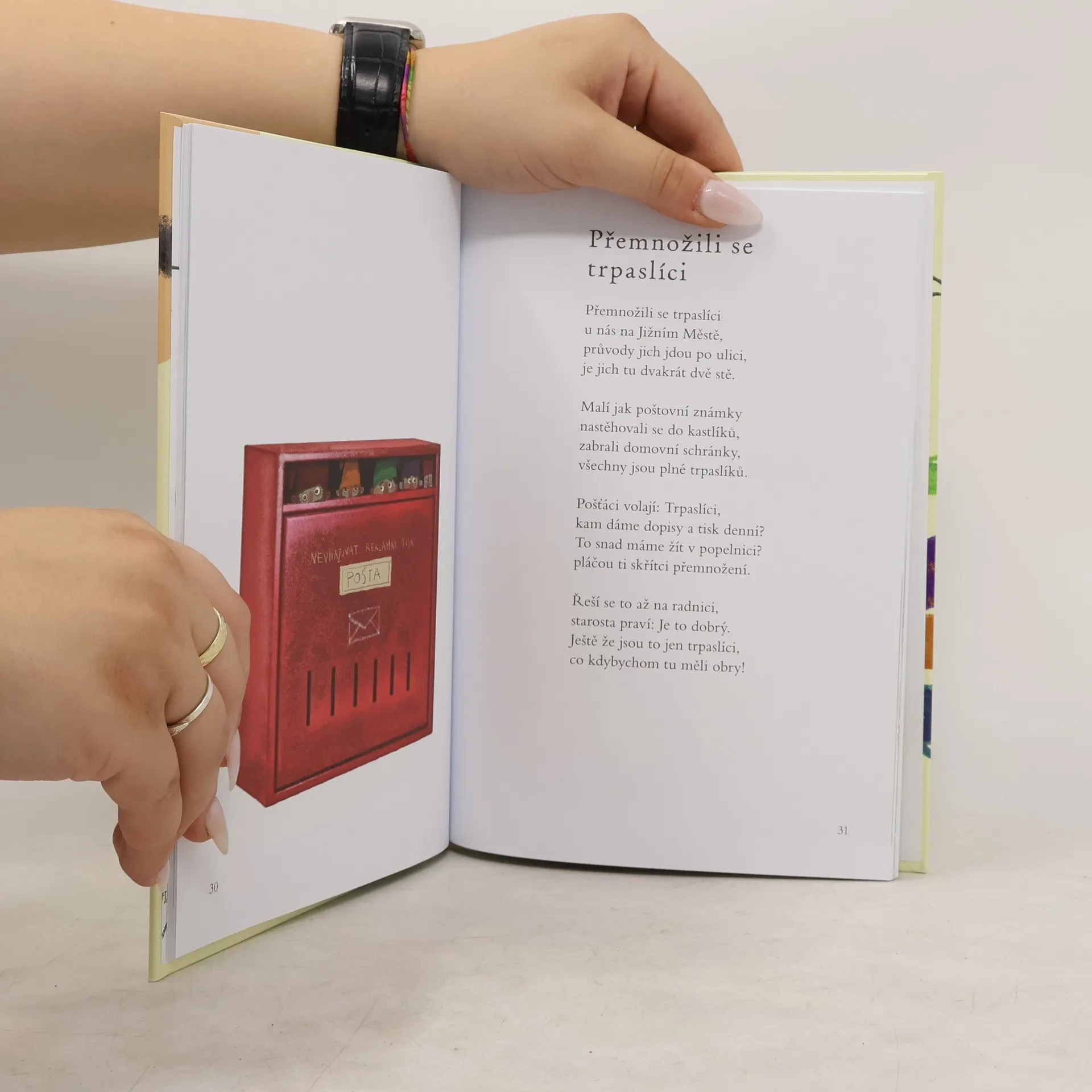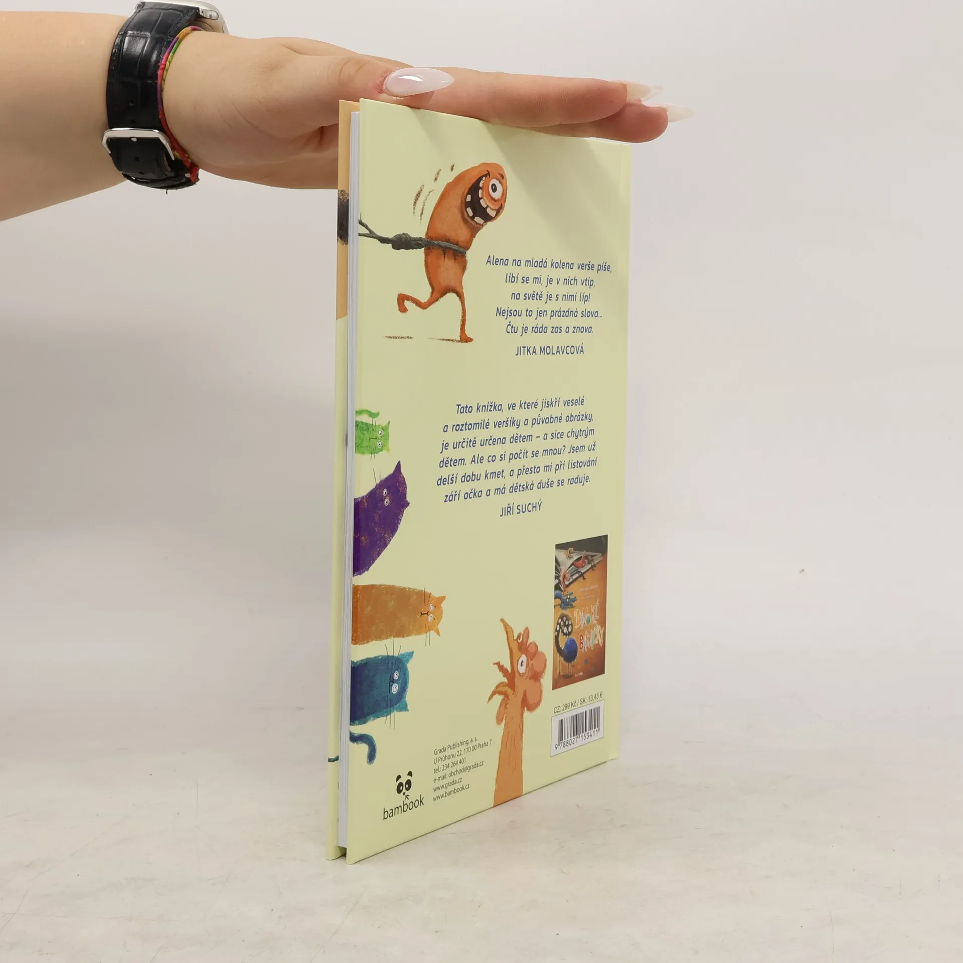Nejsou sentimentální ani ufňukané, tyhle básničky vám nabídnou pořádnou porci humoru i nenásilného poučení. Základem veršů jsou zvukomalebné slovní hříčky, pohrávající si s jednotlivými slovy nebo rčeními. Strašák slušně pozdraví věšák, vlk místo vytí vrká, křeček má vtipné hlody, na sídlišti se přemnoží trpaslíci, strašidlo pod postelí chroupá křupky a netopýři se hádají s jotopýry. Každá básnička přináší malý veselý příběh se zápletkou a překvapivou pointou.