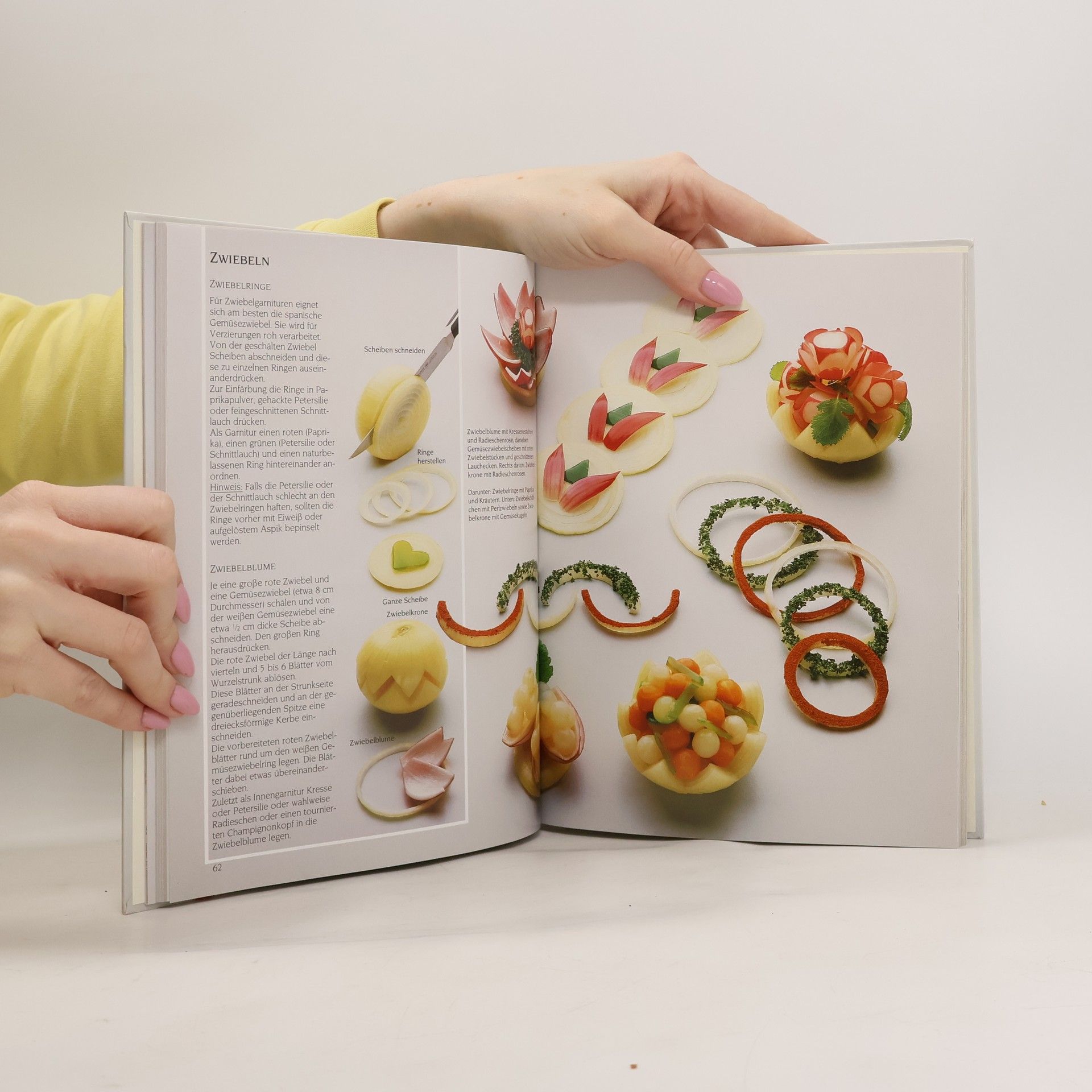 Die in diesem Buch gezeigten Garnituren und Verzierungen helfen, die Gerichte und Speisen zu verschiedensten Anlässen durch phantasievolle Dekorationen zu verschönern. Neben praktischen Anwendungsbeispielen für Fleisch-, Fisch- oder Käseplatten, für Cocktailhappen, Obst und Desserts bietet das Buch eine ausführliche Warenkunde zu den verwendeten Produkten, die den Umgang mit Früchten oder Gemüsen erleichtern und Hinweise zu Lagerung und Verarbeitung geben. Mit den dazugehörenden Küchenwerkzeugen aus hochwertigem Kunststoff und rostfreiem Stahl - einem Kugelausstecher, einem Kanneliermesser, und einem Buntmesser -, alles wichtige Geräte, um attraktive Garnierungen herzustellen, kann man sofort die ersten Projekte in Angriff nehmen.
