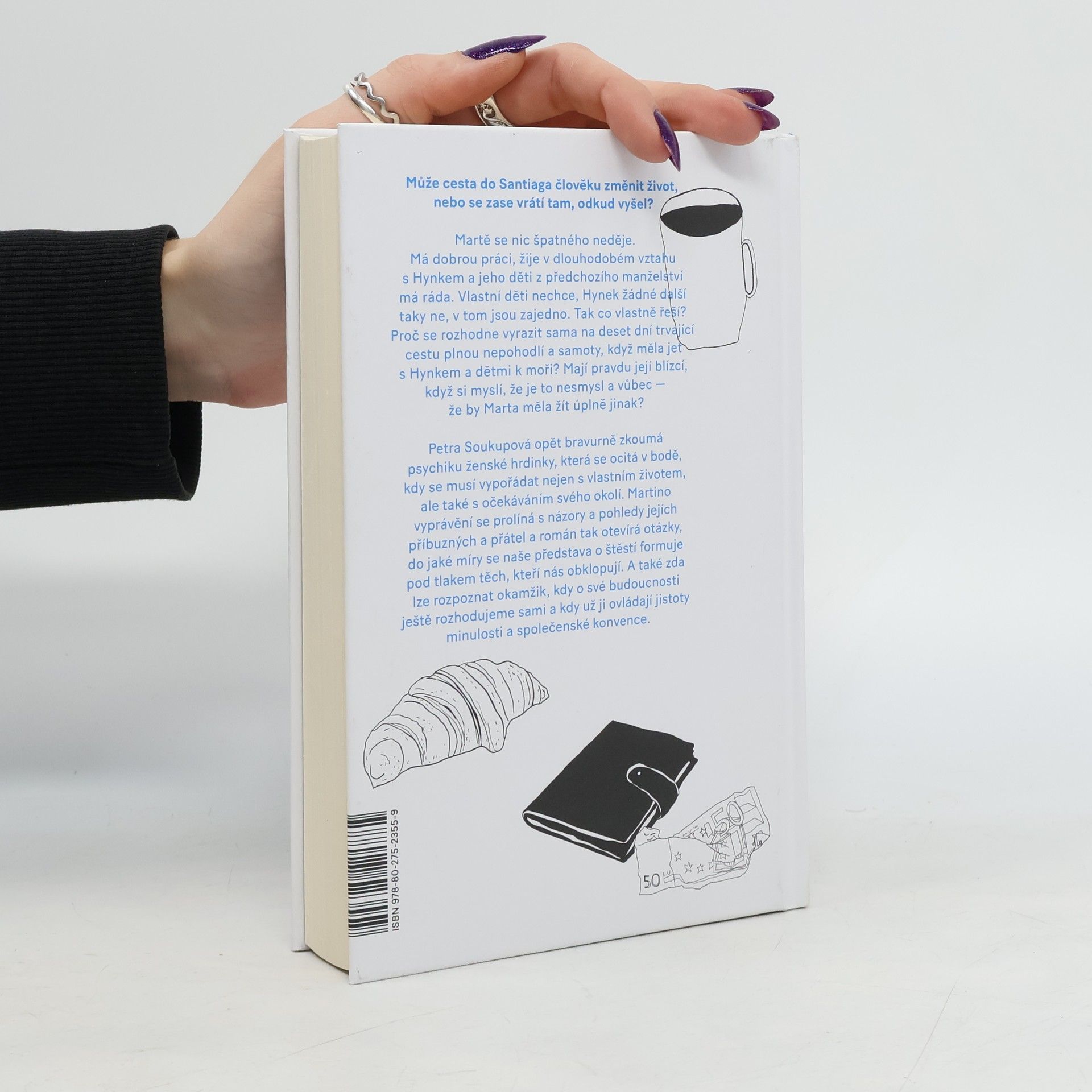 Může cesta do Santiaga změnit člověku život nebo se zase vrátí tam, odkud vyšel? Martě se nic špatného neděje. Má dobrou práci, žije v dlouhodobém vztahu s Hynkem a jeho děti z předchozího manželství má ráda. Svoje děti nechce, Hynek žádné další taky ne, v tom jsou zajedno. Tak co chce vlastně řešit? Proč se rozhodne vyrazitsama na deset dní trvající cestu plnou nepohodlí a samoty, když měla jet s Hynkem a dětmi k moři? Mají pravdu její blízcí, když si myslí, že je to nesmysl a vůbec — že by Marta měla žít úplně jinak? Petra Soukupová opět bravurně zkoumá psychiku ženské hrdinky, která se ocitá v bodě, kdy se musí vypořádat nejen s vlastním životem, ale také s očekáváními svého okolí. Martino vyprávění se prolíná s názory a pohledy jejích blízkých a román tak otevírá otázky, do jaké míry se naše představa o štěstí formuje pod tlakem těch, kteří nás obklopují. A také zda lze rozpoznat okamžik, kdy o své budoucnosti ještě rozhodujeme sami a kdy už ji ovládají jistoty minulosti a společenské konvence.