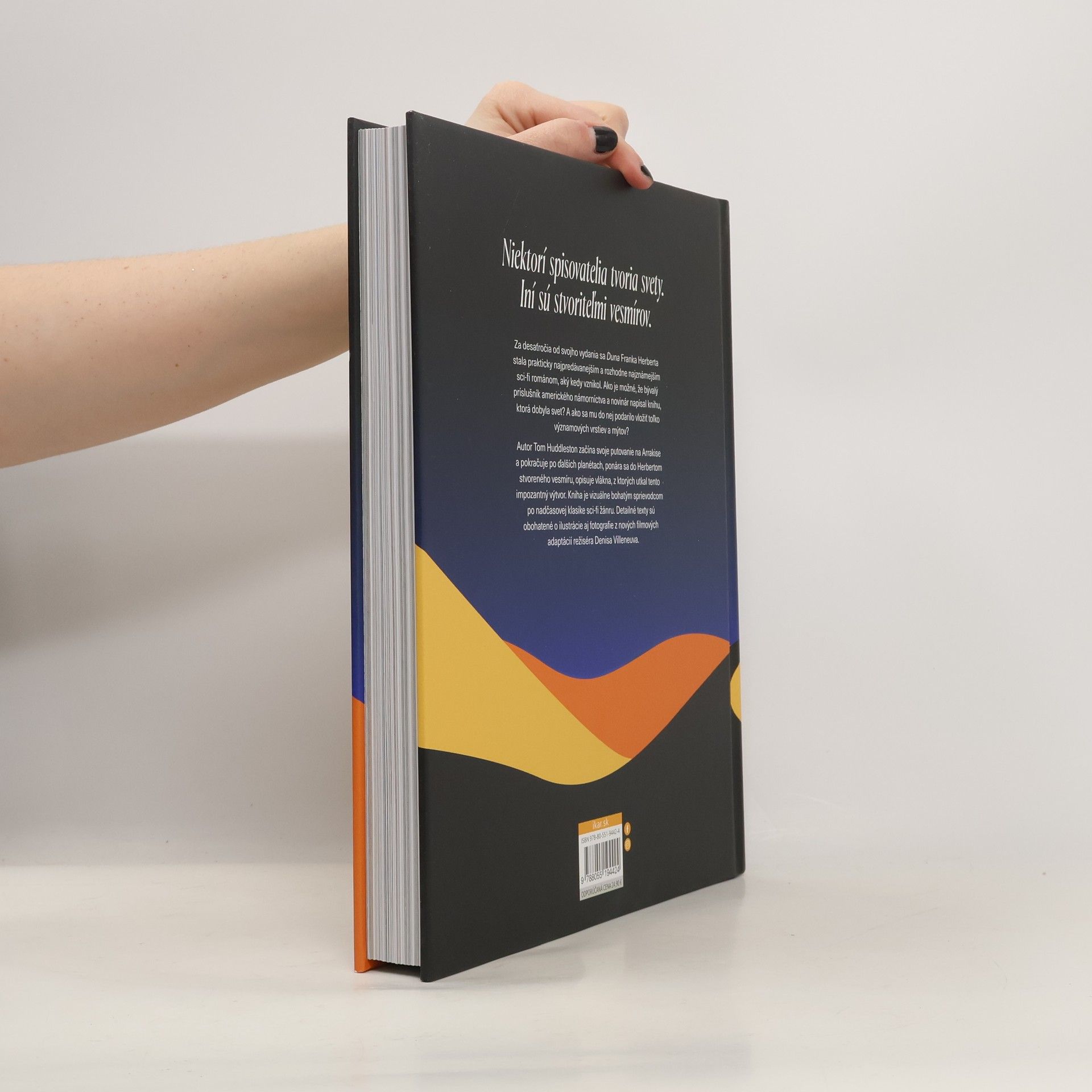 Za desaťročia od svojho vydania sa Duna Franka Herberta stala prakticky najpredávanejším a rozhodne najznámejším sci-fi románom, aký kedy vznikol. Ako je možné, že bývalý príslušník amerického námorníctva a novinár napísal knihu, ktorá dobyla svet? A ako sa mu do nej podarilo vložiť toľko významových vrstiev a mýtov? Herbertovu bezhraničnú predstavivosť podnietilo závratné množstvo myšlienok – od antických dejín po najnovšie vedecké poznatky, od environmentalizmu po zenovú filozofiu, od arabských textov po Shakespearove tragédie. Autor knihy Duna: Miesta a kultúry, ktoré ovplyvnili Franka Herberta začína svoje putovanie na Arrakise a pokračuje po ďalších planétach, ponára sa do Herbertom stvoreného vesmíru, opisuje rozličné vlákna, z ktorých utkal tento impozantný výtvor. Kniha je vizuálne bohatým sprievodcom po nadčasovej klasike sci-fi žánru. Detailné texty sú obohatené o ilustrácie aj fotografie z nových filmových adaptácií režiséra Denisa Villeneuva.