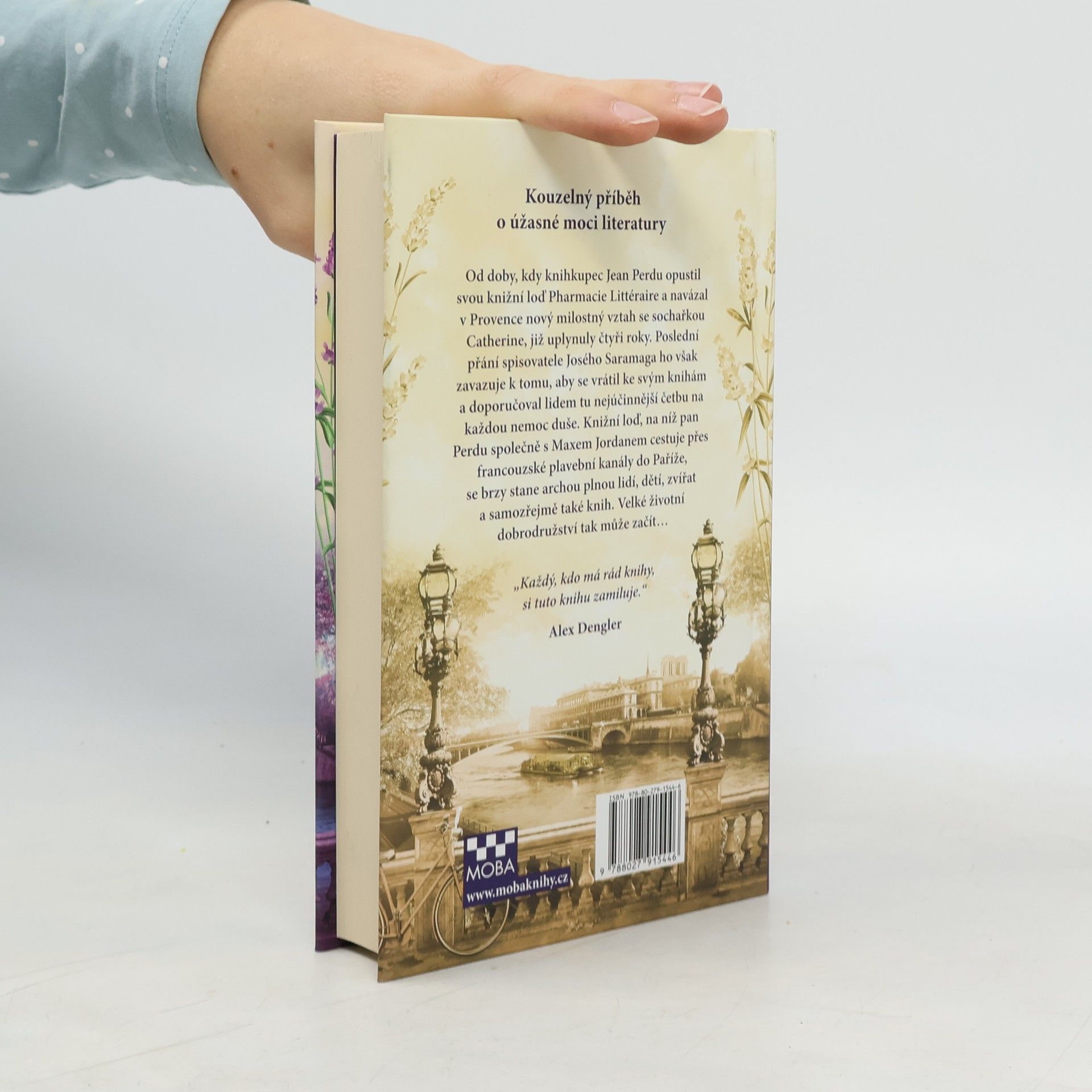Od doby, kdy knihkupec Jean Perdu opustil svou knižní loď Pharmacie Littéraire a pustil se do nového milostného vztahu se sochařkou Catherine v Provence, již uplynuly čtyři roky. Poslední přání spisovatele Josého Saramaga ho však zavazuje k tomu, aby se vrátil ke svým knihám a doporučil lidem tu nejúčinnější četbu na každou nemoc duše.Knižní loď pana Perdua, která cestuje společně s Maxem Jordanem přes francouzské kanály do Paříže, se brzy stane archou, na níž jsou lidé, děti, zvířata a samozřejmě také knihy. Knihy přinášející výjimečné dobrodružství i novou naději…