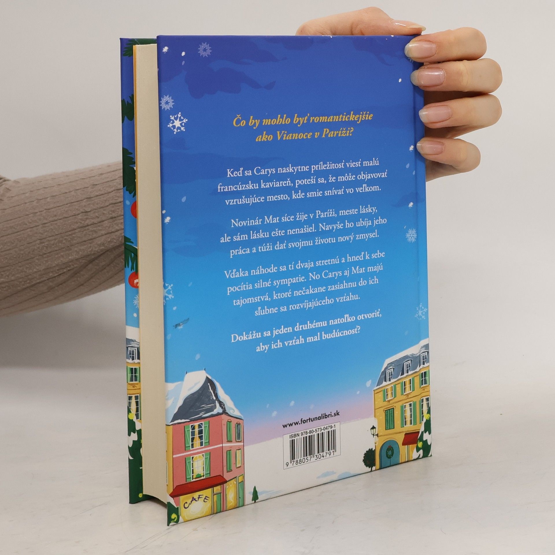 Čo by mohlo byť romantickejšie ako Vianoce v Paríži? Nájdu lásku v zasneženom meste? *** Keď sa Carys naskytne príležitosť viesť malú francúzsku kaviareň, poteší sa, že môže objavovať vzrušujúce mesto, kde smie snívať vo veľkom. Novinár Mat síce žije v Paríži, meste lásky, ale sám lásku ešte nenašiel. Navyše ho ubíja jehopráca a túži dať svojmu životu nový zmysel. Vďaka náhode sa tí dvaja stretnú a hneď k sebe pocítia silné sympatie. No Carys aj Mat majú tajomstvá, ktoré nečakane zasiahnu do ich sľubne sa rozvíjajúceho vzťahu. Dokážu sa jeden druhému natoľko otvoriť, aby ich vzťah mal budúcnosť?