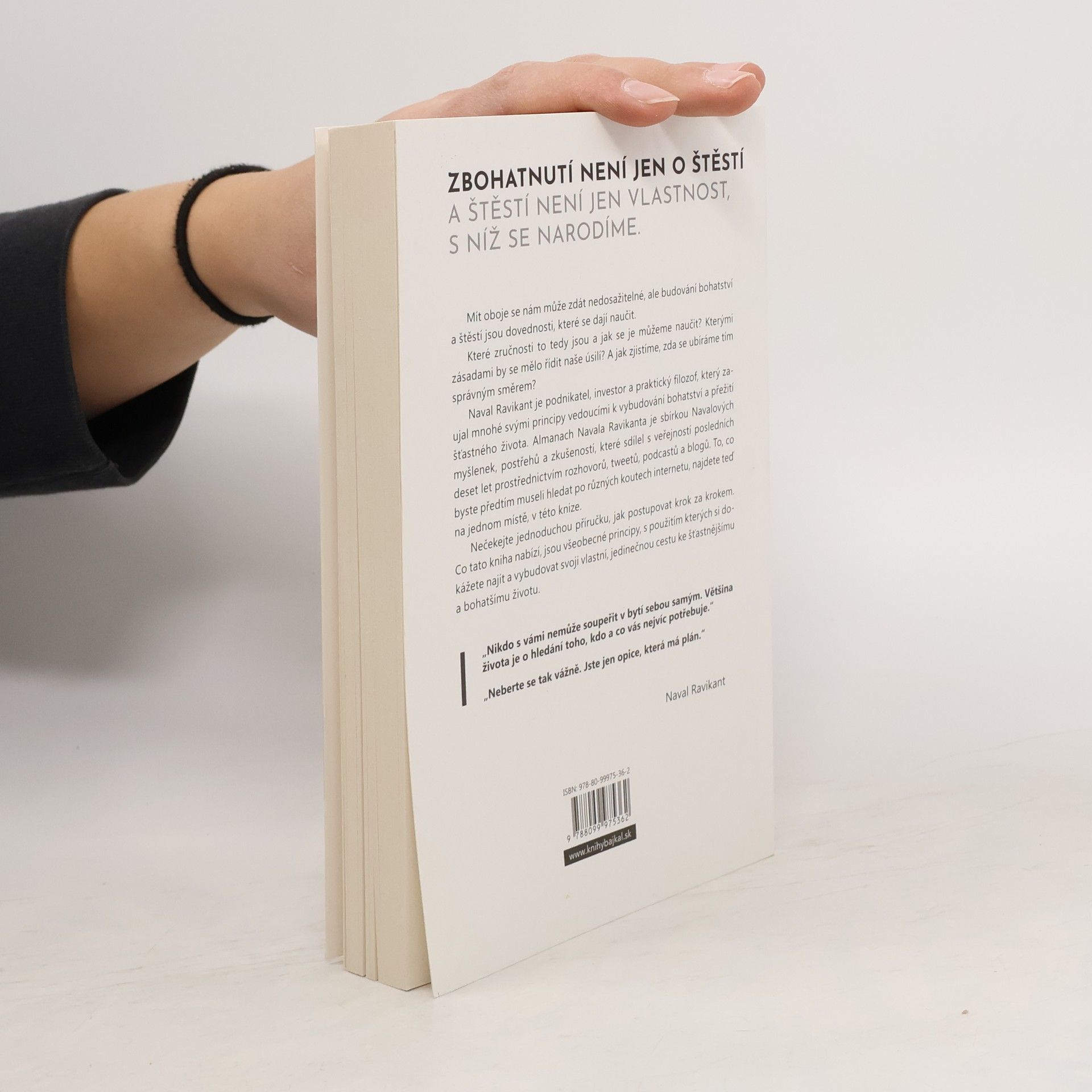 Zbohatnutí není jen o štěstí a štěstí není jen vlastnost, s níž se narodíme. Mít oboje se nám může zdát nedosažitelné, ale budování bohatství a štěstí jsou dovednosti, které se dají naučit. Naval Ravikant je podnikatel, investor a praktický filozof, který zaujal mnohé svými principy vedoucími k vybudování bohatství a přežití šťastného života. Almanach Navala Ravikanta je sbírkou Navalových myšlenek, postřehů a zkušeností, které sdílel s veřejností posledních deset let prostřednictvím rozhovorů, tweetů, podcastů a blogů. To, co byste předtím museli hledat po různých koutech internetu, najdete teď na jednom místě, v této knize. Nečekejte jednoduchou příručku, jak postupovat krok za krokem. Co tato kniha nabízí, jsou všeobecné principy, s použitím kterých si dokážete najít a vybudovat svoji vlastní, jedinečnou cestu ke šťastnějšímu a bohatšímu životu.