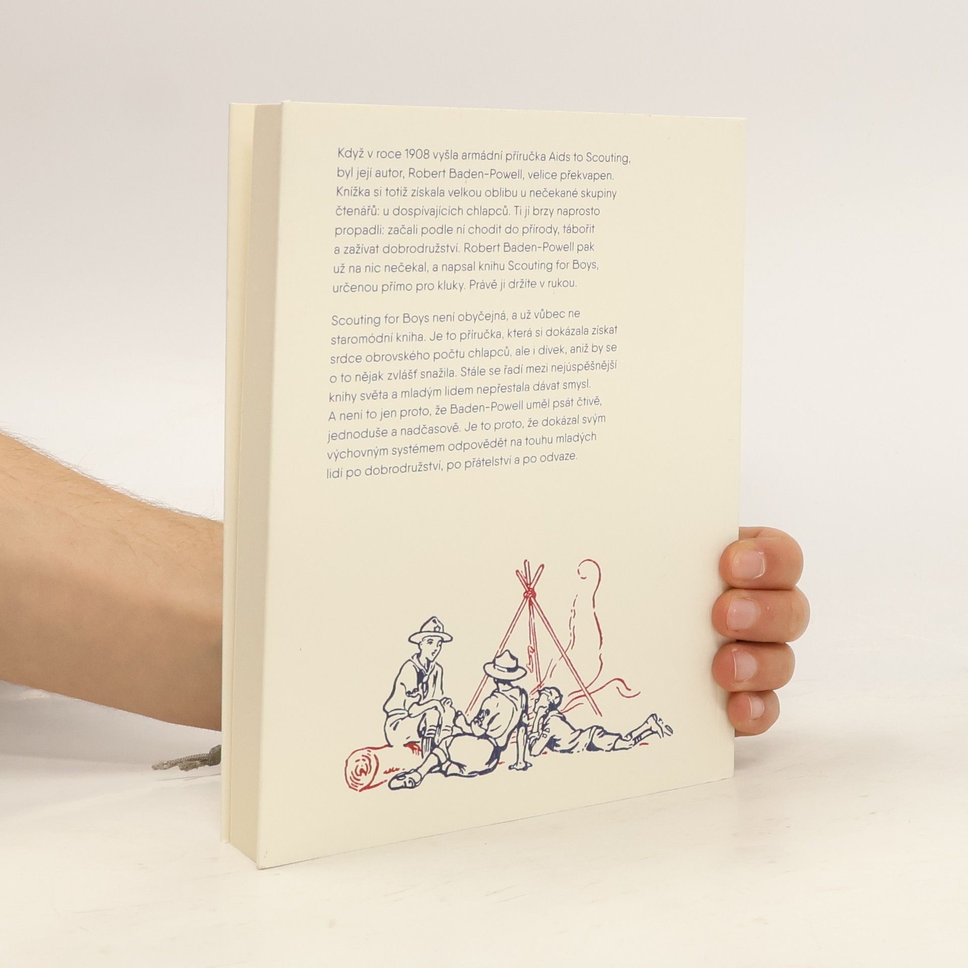 Tato Baden-Powellova kniha spustila v roce 1908 lavinu, která se valí dodnes. Scouting for Boys není obyčejná, a už vůbec ne staromódní kniha. Je to příručka, která si dokázala získat srdce obrovského počtu chlapců, ale i dívek, aniž by se o to nějak zvlášť snažila. Stále se řadí mezi nejúspěšnější knihy světa a mladým lidem nepřestala dávat smysl. A není to jen proto, že BadenPowell uměl psát čtivě, jednoduše a nadčasově. Je to proto, že dokázal svým výchovným systémem odpovědět na touhu mladých lidí po dobrodružství, přátelství a odvaze.