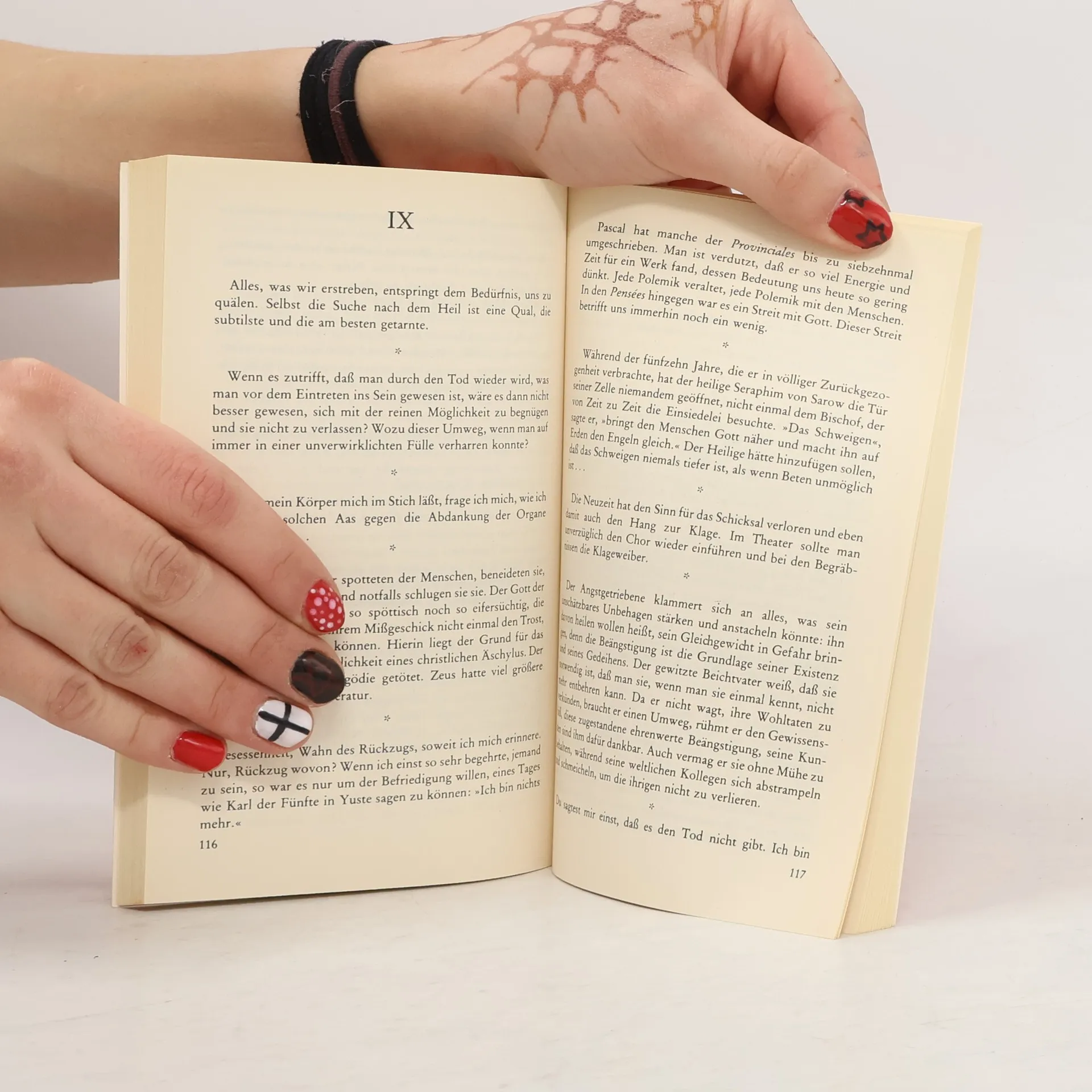 »Man kann nicht nachdenken und bescheiden sein. Sobald der Geist sich in Bewegung setzt, nimmt er den Platz Gottes und alles sonstigen ein. Er ist Indiskretion, Übergriff, Profanierung. Er ›arbeitet‹ nicht, er zersetzt. Die Spannung, die sein Vorgehen verrät, beweist Brutalität und Unerbittlichkeit. Ohne eine kräftige Dosis Grausamkeit könnte man keinen einzigen Gedanken zu Ende führen.« Dieses Bekenntnis zur Destruktivität des Geistes könnte als Motto über die versammelten Gedanken und Aphorismen stehen. Unter Ciorans Philosophenhammer bleibt nichts heil. In einer Manier, die an Nietzsches und Georges Batailles intellektuelle Unnachsichtigkeit erinnert, verletzt und verstört er alles, was uns hoch und heilig erscheint. Nichts bleibt in Ordnung, kein Stein an seinem Platz. »Alles ist Trug, ich habe es immer gewußt...« Selbst das Denken, das den Trug entlarven will, entpuppt sich als Selbstbetrug. Cioran hat in seinen Aphorismen eine Position des Zweiflers, des radikalen Skeptikers bezogen. Skepsis, »das ist der Rausch der Ausweglosigkeit«. In solchen Paradoxien bewegt sich Ciorans Denken, und es wäre ein Missverständnis, ihm diese Paradoxien als Vorwurf zu machen. Sie sind nicht dazu da, ausgelöscht zu werden, sondern um in ihrer Existenz etwas von der Paradoxie menschlicher Existenz fassbar zu machen.