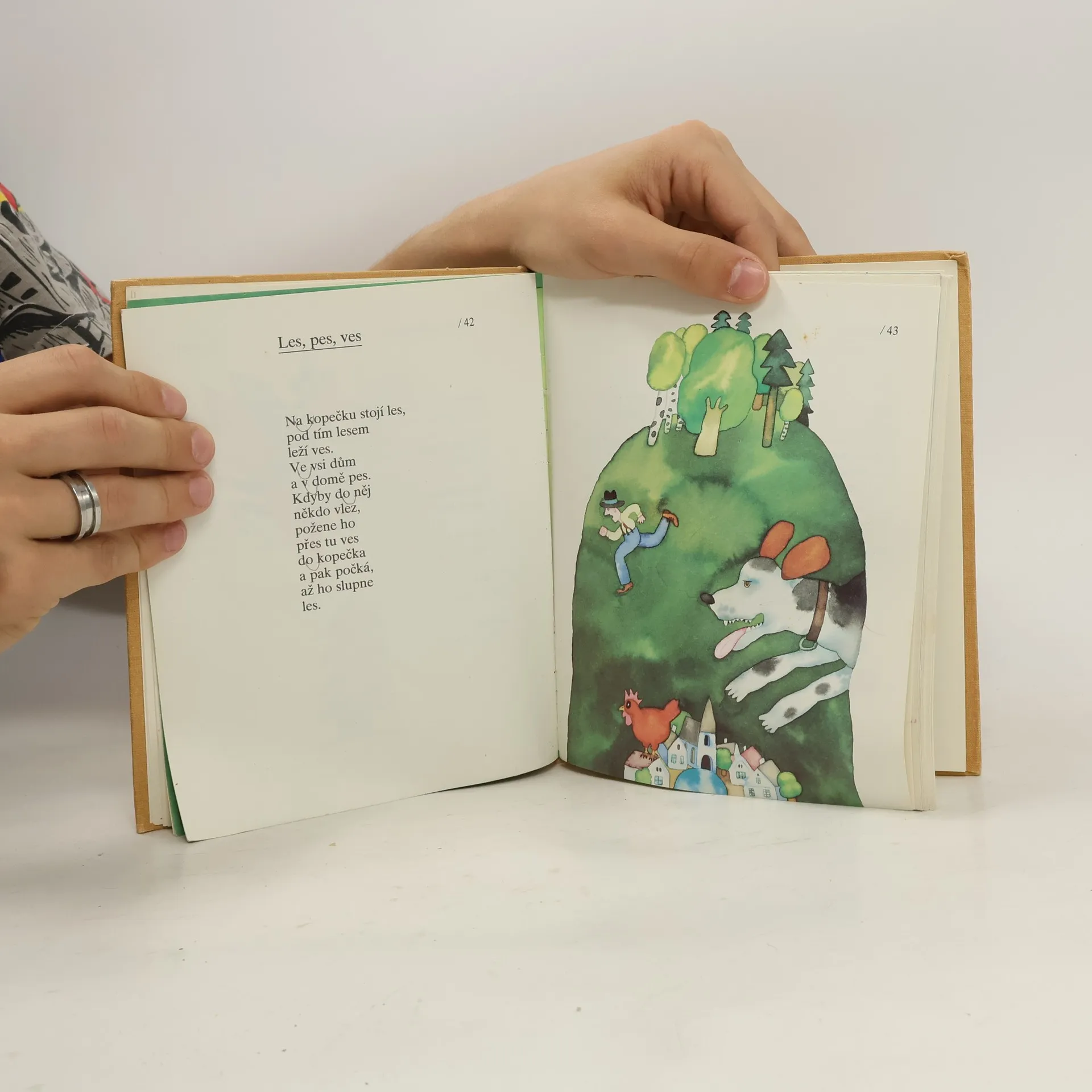 Tato kniha obsahuje pozvánku na cestu do kraje, který je domovem básníka, jeho dětí a lidiček, které má rád. Současně ale tato kniha vybízí děti ke hře s jazykem. Jakoby ústy Vůjtka promlouval básník, který chtěl říct – hle, podívejte, jak se kopec převléká, na jaře má klobouk z kytek a v zimě čepici až na uši. Ono se totižv této knize stále něco děje – slunce plave v rybníku, les bafá z vodní dýmky, konvice na čaj houká jako vlak a zmrzlou vodou k nám pospíchají Vánoce.