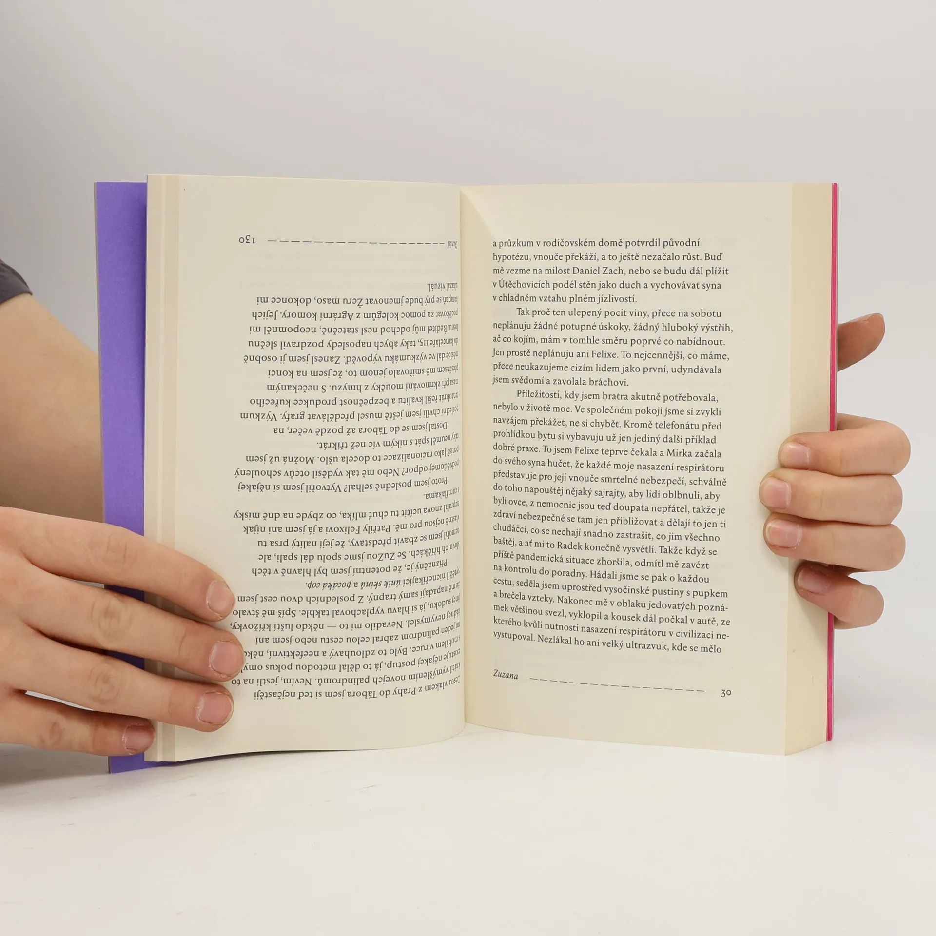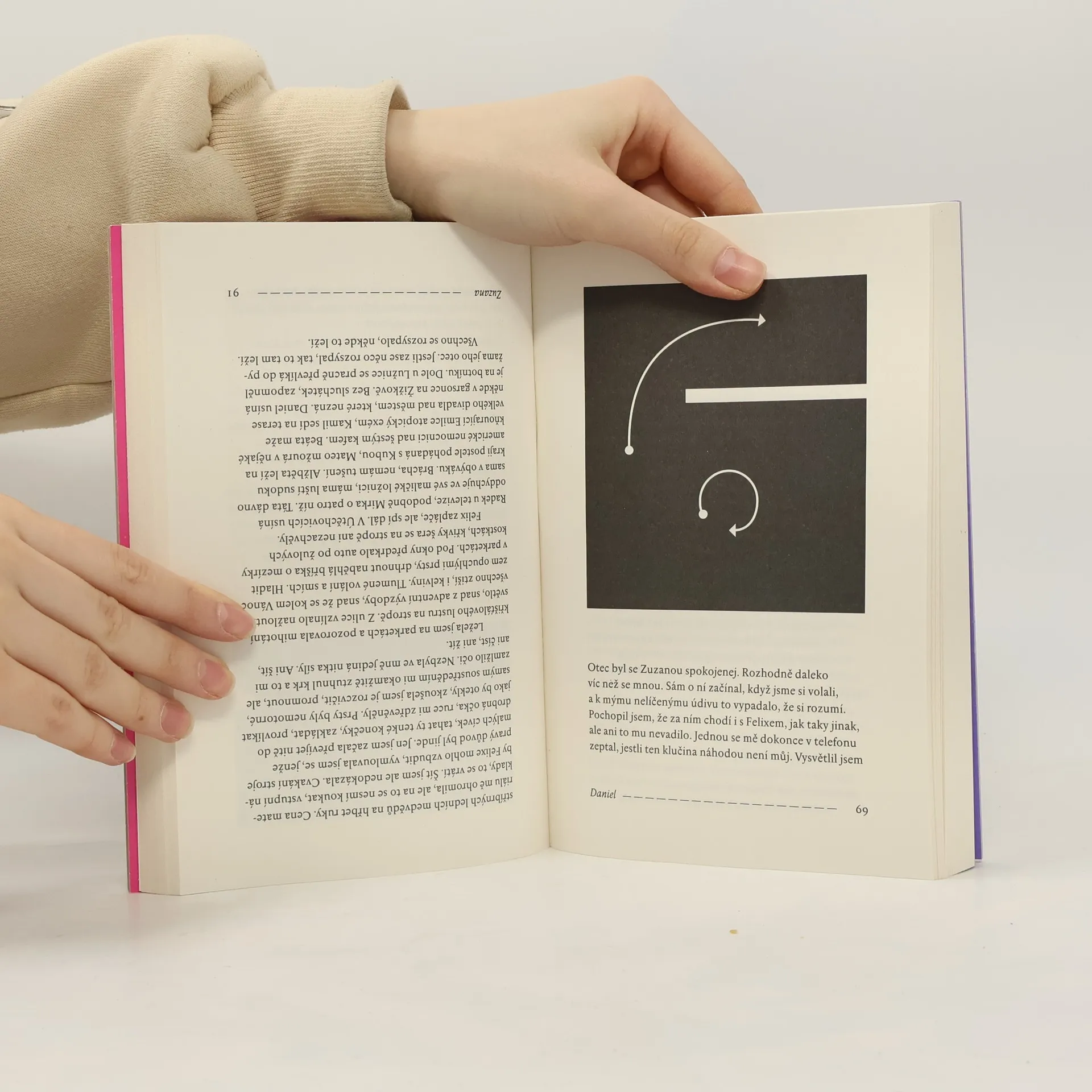 Experimentální román ze současnosti. Daniel vlastní byt v Táboře, ale pracuje v Praze a domů jezdí jen na víkendy. Zuzana odešla od přítele a nemá dost peněz, takže uvítá nájem aspoň na všední dny. Ty dva nespojuje nic než prostor, který každý po svém obývají, a ten prostor je zároveň rozděluje. Jak by vlastně dva lidé mohlimít něco společného? On se stará o umírajícího otce, péče o hrany života však zbude vždycky na ni. Jemu zalehlo srdce, ona má šelest na mozku. Dva příběhy ze současnosti, které se dotýkají a zároveň míjejí, dvě samomluvy, které se až díky čtenáři mohou stát rozhovorem. Jana Šrámková a Jan Němec našli nezvyklý způsob, jak napsat knihu dohromady a zároveň každý zvlášť. Výsledkem je originální román, který lze číst z jedné nebo druhé strany, anebo třeba na přeskáčku. Není to však literární hra, ale osudová volba: na směru čtení nezávisí nic menšího než Danielova a Zuzanina budoucnost. Není však život nakonec palindrom? V elipse spí lev, říká Daniel. Uchem v mechu, odpovídá Zuzana.