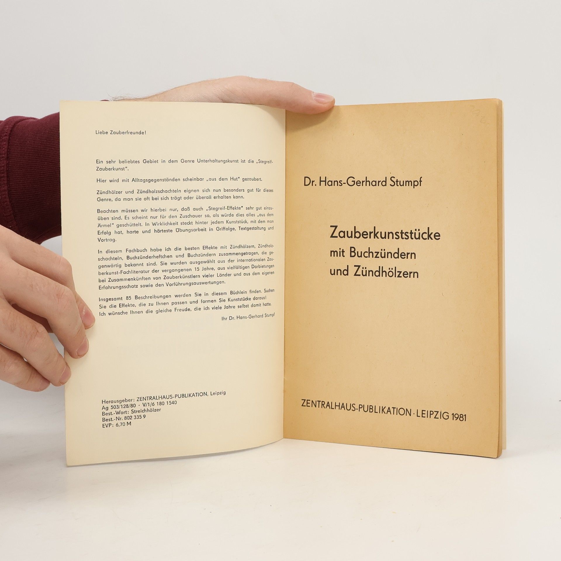 Zauberkunststücke mit Buchzündern und Zündhölzern, Dr. Hans-Gerhard Stumpf