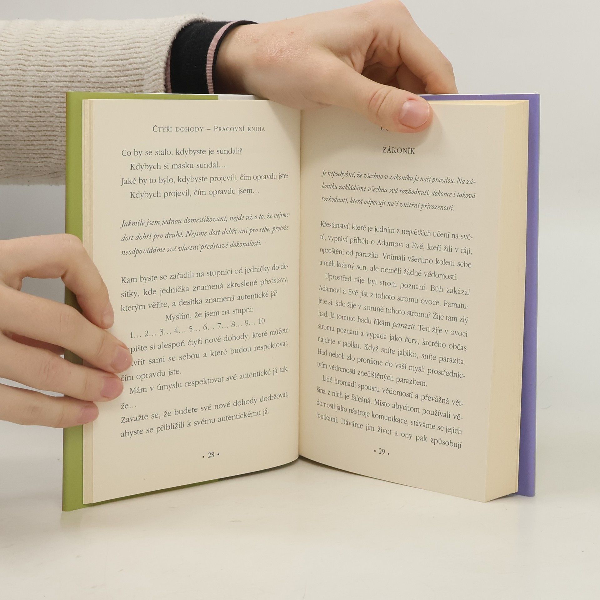 Ve Čtyřech dohodách odhaluje don Miguel Ruiz zdroj špatných životních návyků, které nás připravují o radost a vedou ke zbytečnému utrpení. Čtyři dohody, založené na staré toltécké moudrosti, nabízejí nový přístup k vlastnímu vnitru, abychom dokázali proměnit svůj život v prožitek svobody, opravdového štěstí a lásky. Tato edice ve velmi hezkém grafickém provedení vyšla k patnáctému výročí prvního vydání dnes už světoznámého titulu.